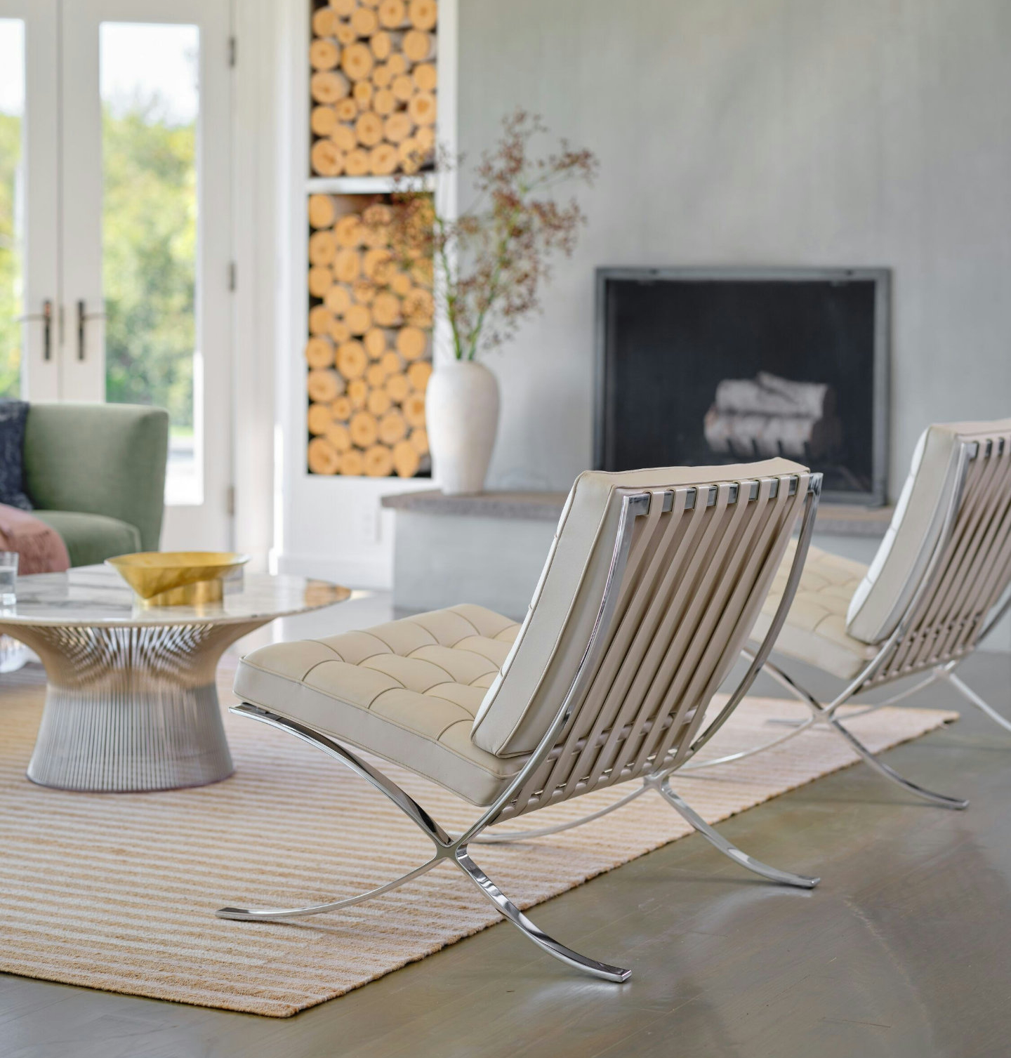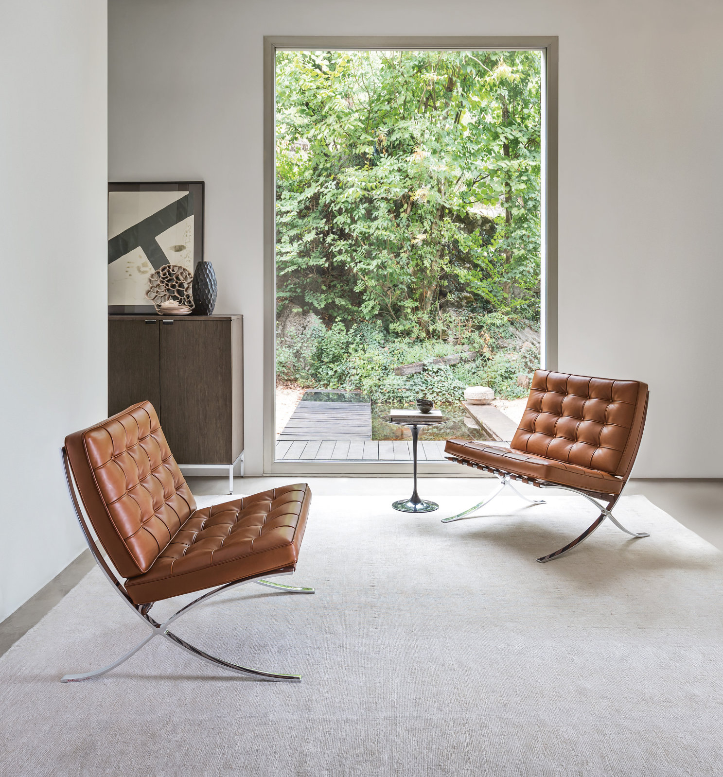 Uno de los objetos más reconocidos del siglo pasado y un icono del movimiento moderno, la elegancia sencilla y el perfil elegante de la silla Barcelona personifican la máxima más famosa de Mies van der Rohe: "menos es más". Desde el marco de acero inoxidable o cromo pulido a mano hasta los cuadrados de cuero individuales cuidadosamente cosidos entre sí, cada pieza de Barcelona es un homenaje a la unión del diseño moderno y la artesanía excepcional.