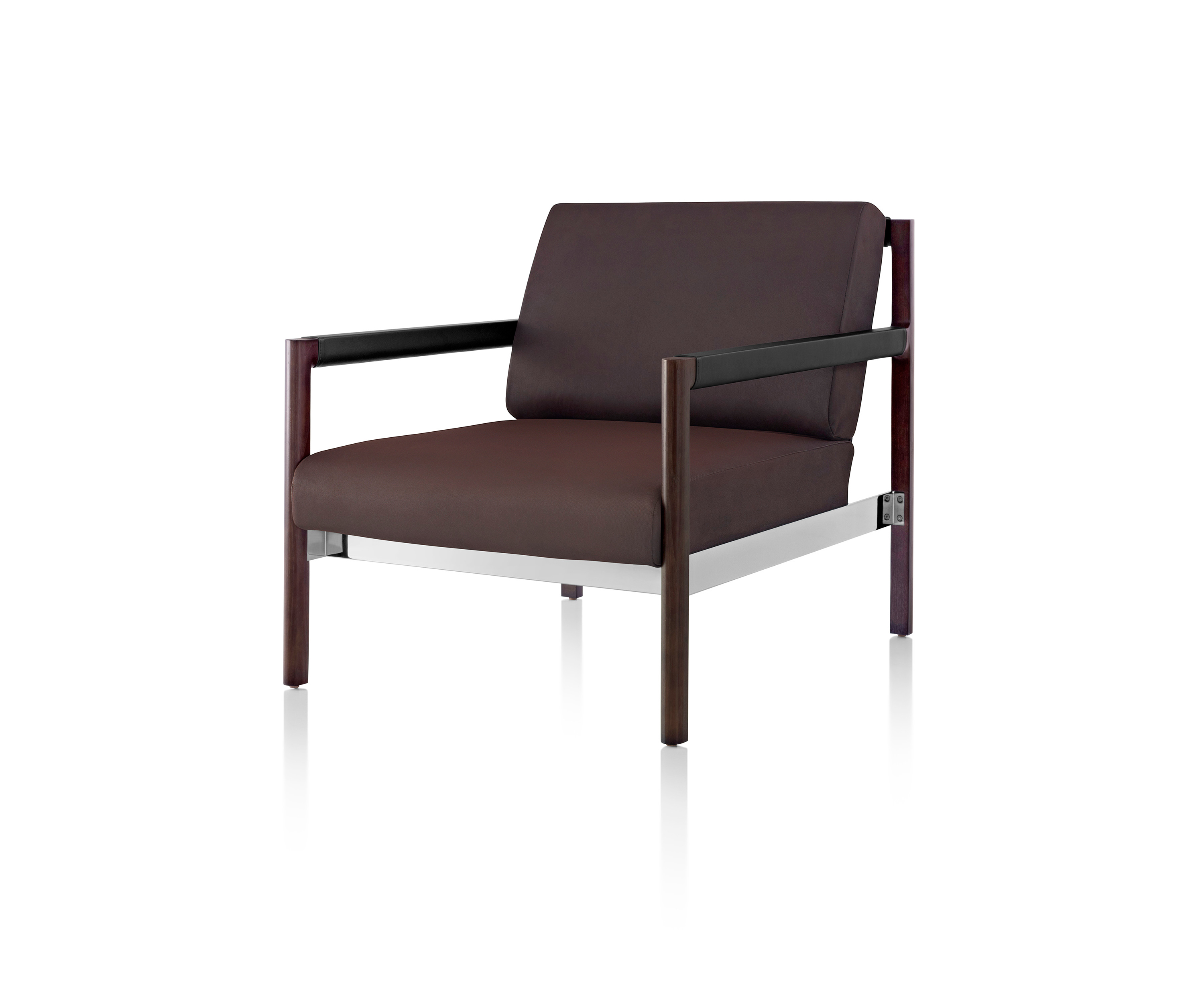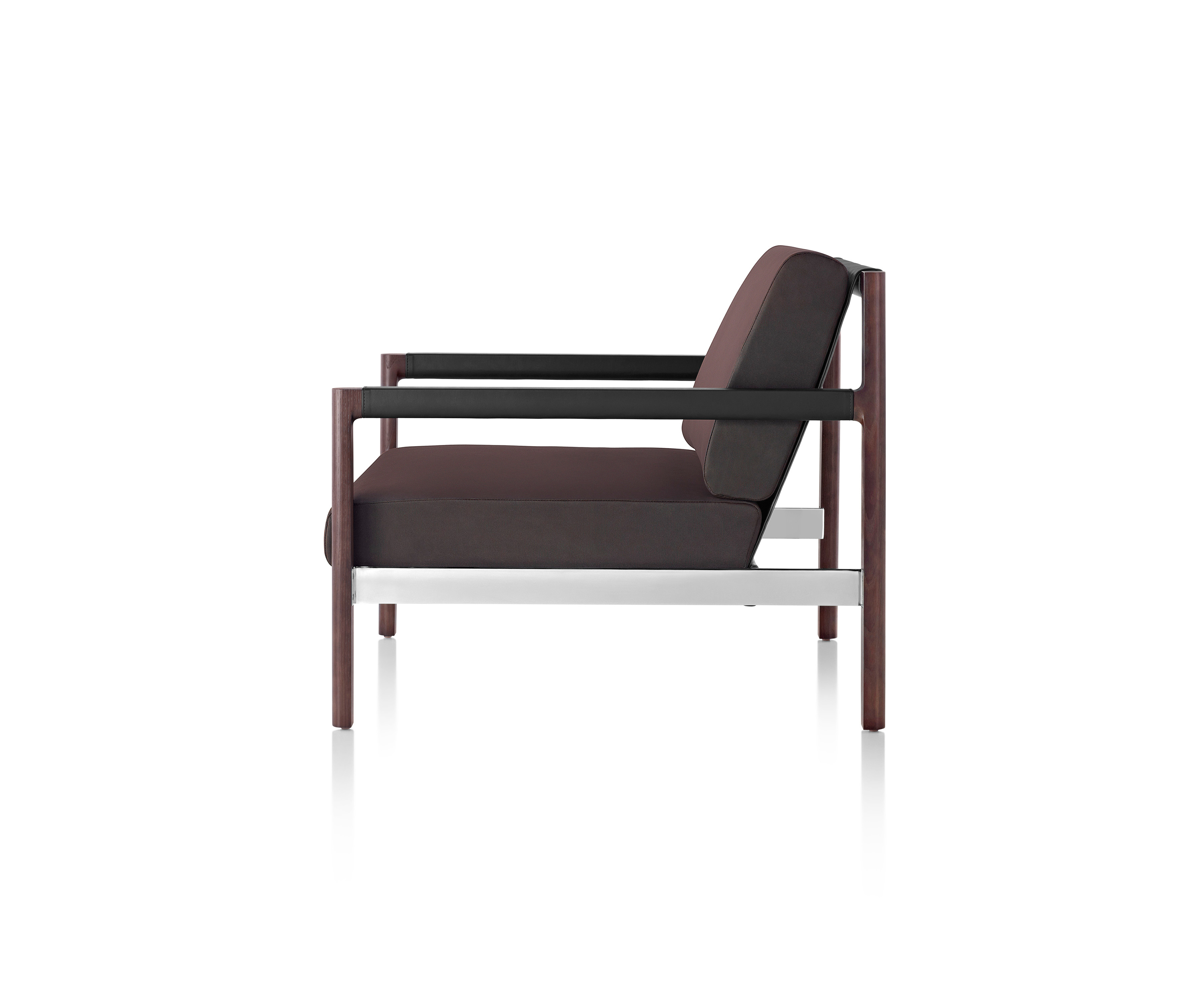 La hábil combinación de materiales finos como cuero, metal y madera en cada pieza de la colección (que incluye chaise lounge, canapés y sofás) es extremadamente detallada y está disponible en una variedad de acabados en fresno macizo o nogal macizo, tres acabados metálicos y una selección de cueros MCL, lo que la convierte en la silla ideal para un living, un área de descanso o de trabajo.