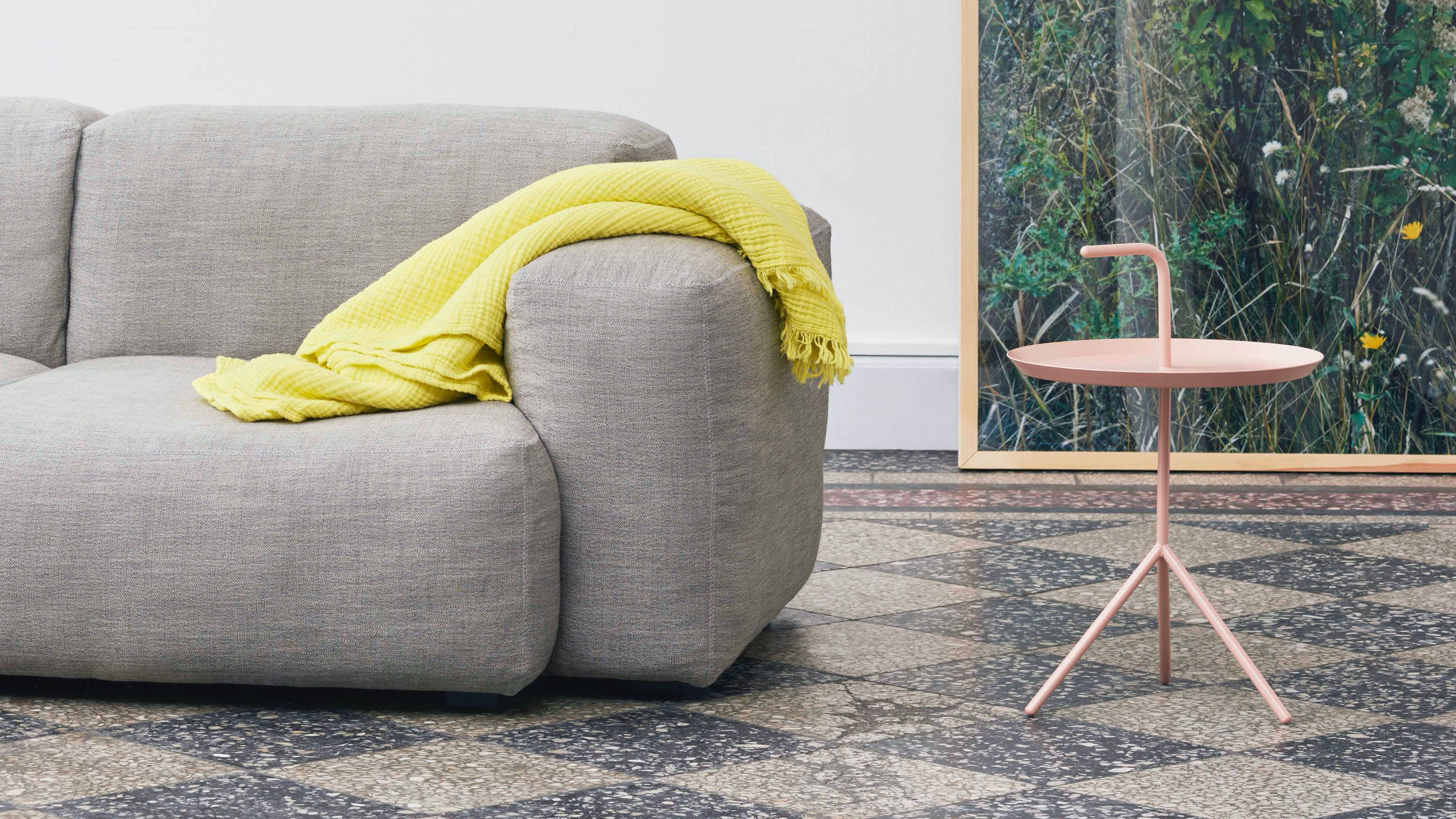 Acertadamente llamada “Don’t Leave Me” (No me dejes) y comúnmente abreviada “DLM”, esta mesa auxiliar portátil tiene una manija que permite transportarla de una sala a la otra. Si bien tiene una estructura liviana, sus patas inclinadas aportan gran estabilidad. Disponible en tamaño estándar o XL.