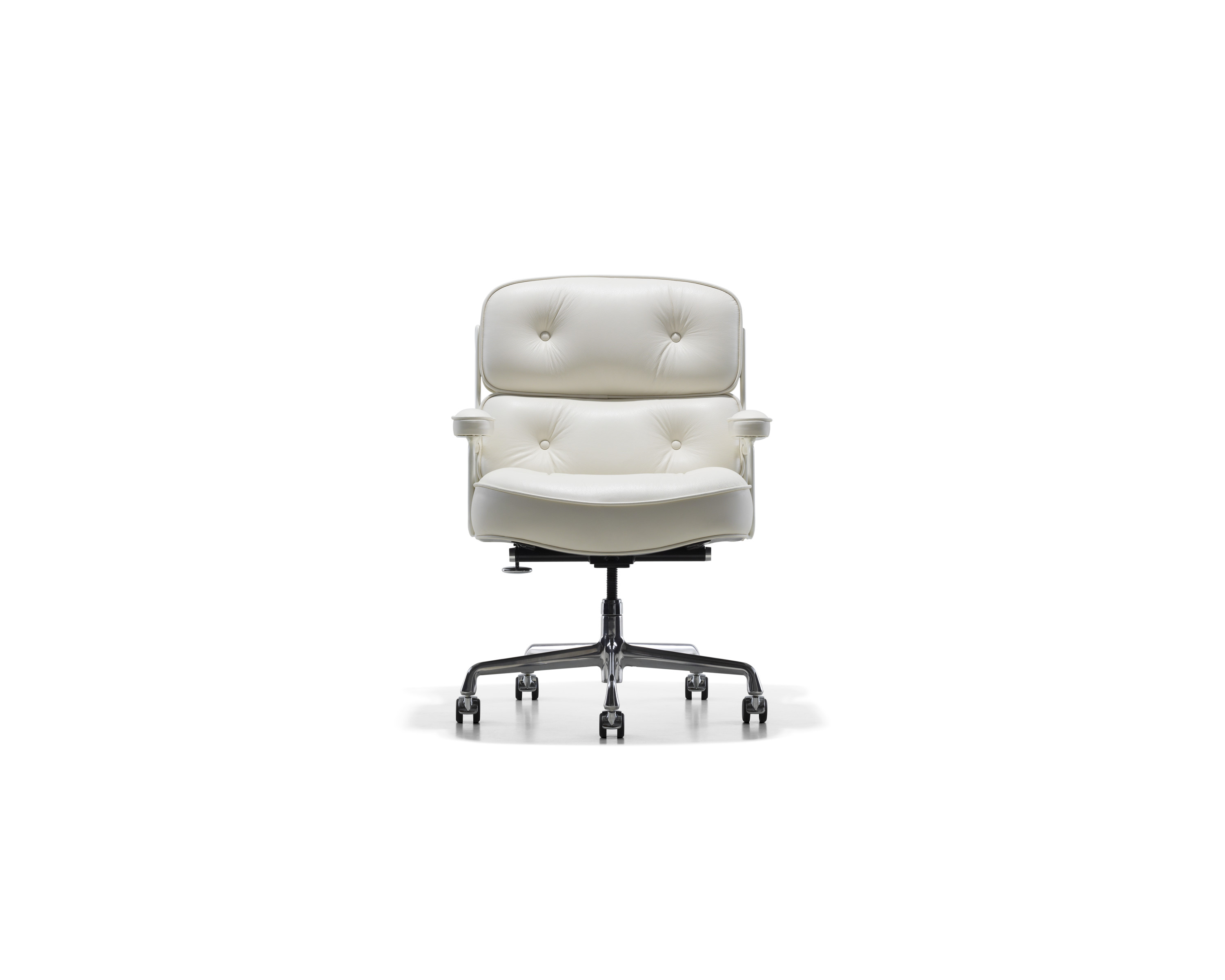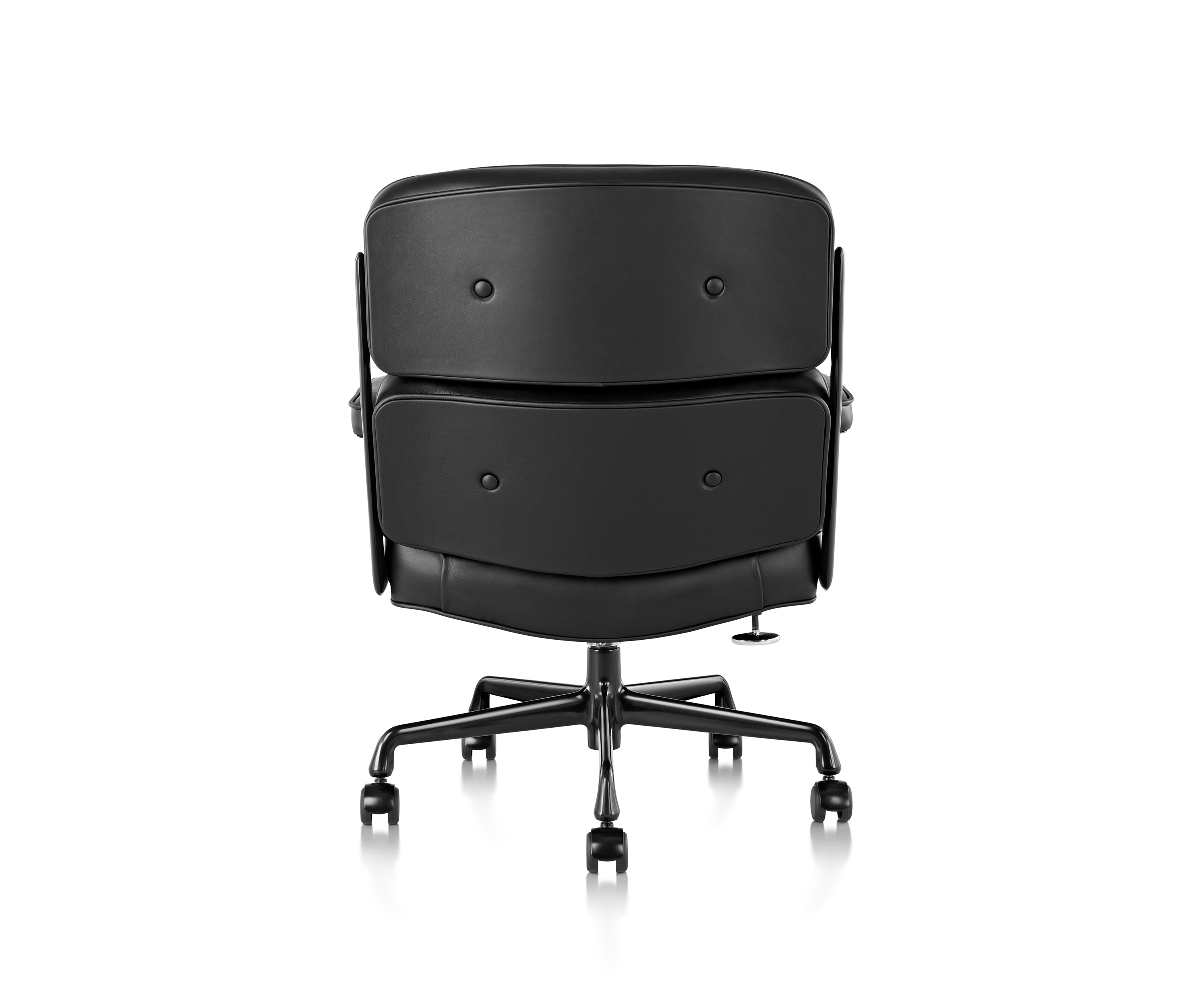 Esta silla lujosa es un ejemplo de la convicción de Charles Eames de que "los detalles no son detalles; crean el producto". De tamaño generoso, la silla ejecutiva de trabajo presenta una estructura y base de aluminio liviana y tiene finos detalles de cuero o tapicería de géneros, acentuada con botones cubiertos y detalles en los bordes típicos de los muebles finos tradicionales.