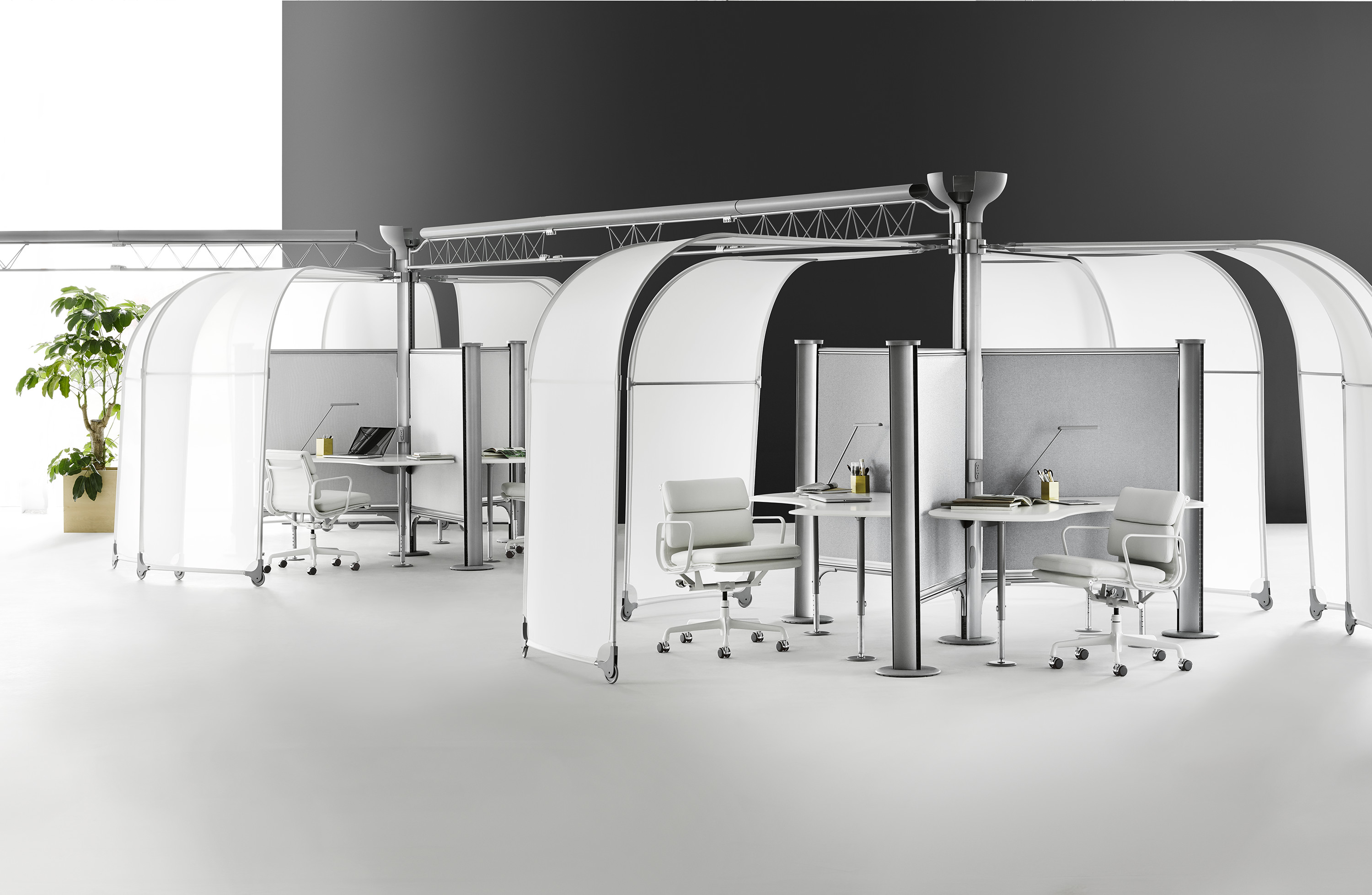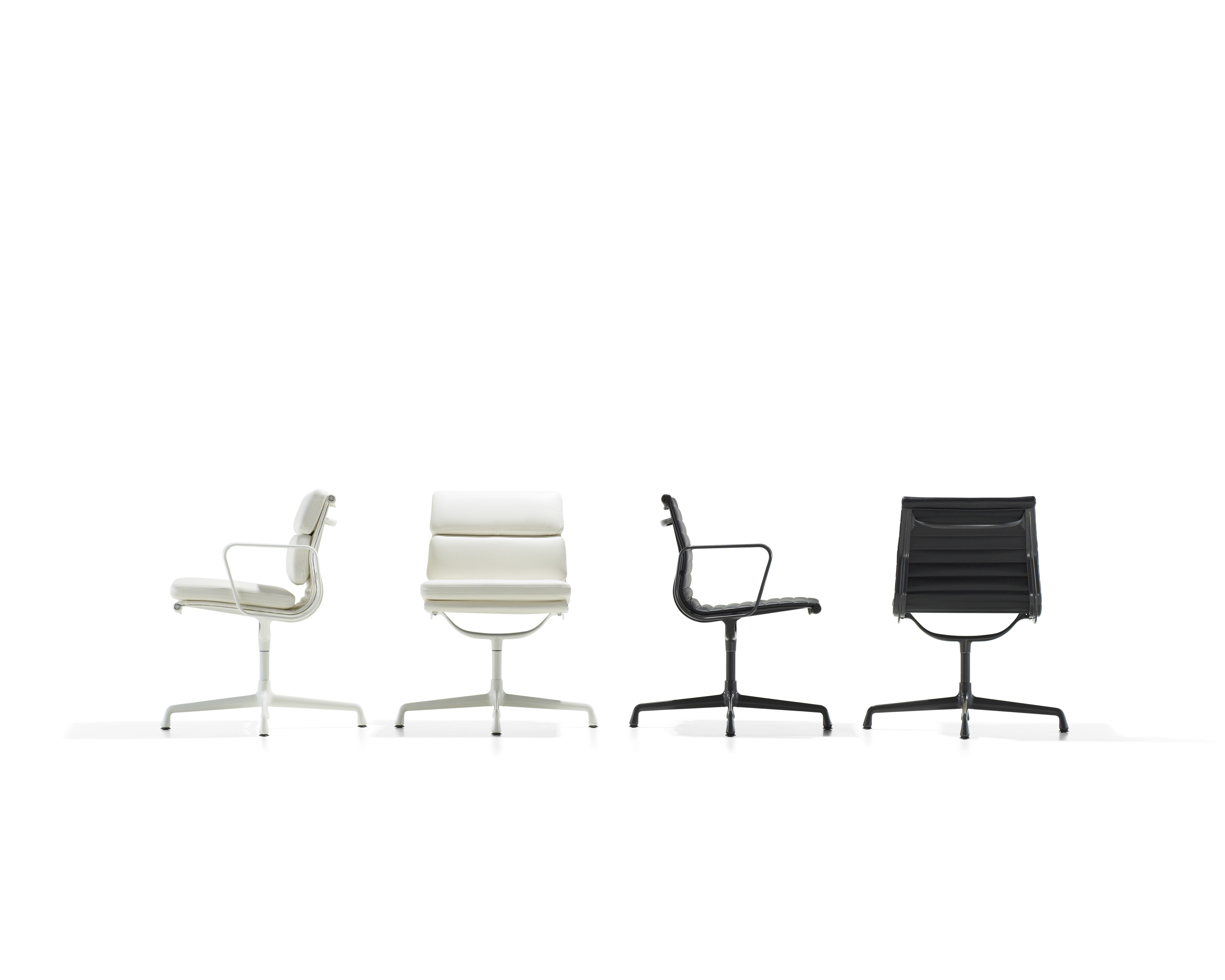 Nunca a favor del estilo sobre lo esencial, Charles y Ray Eames le dieron a los diseños de sus sillas una suspensión innovadora que crea una "cavidad para sentarse" firme, flexible, que se adapta sutilmente a la forma del cuerpo. Crearon esa suspensión al estirar una pieza continua de tapicería para respaldos de asiento con tensión entre los bordes laterales de aluminio liviano. Los almohadones de espuma de las sillas Soft Pad no se aplastan ni se apelmazan con el paso del tiempo.