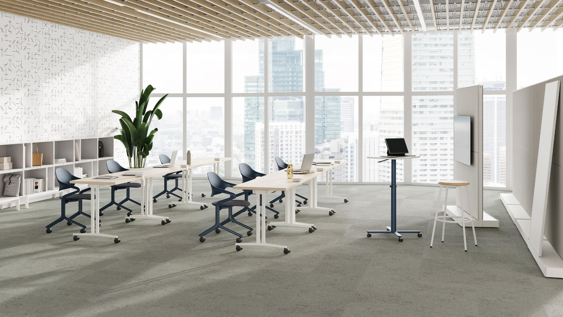 Con su estética refrescante, Fuld se destaca entre las sillas nido, lo que te permite reconfigurar el espacio para diferentes usos, como sesiones de trabajo y eventos educativos, sin sacrificar el estilo. Diseñada para la practicidad, cuenta con asientos abatibles y patas que salvan paredes, ya que evitan que el respaldo roce contra las paredes. Las líneas únicas y el aspecto monocromático o multicolor de Fuld dan vida a cualquier espacio, incluso cuando se almacenan al aire libre, lo que demuestra que lo funcional puede ser atrevido.