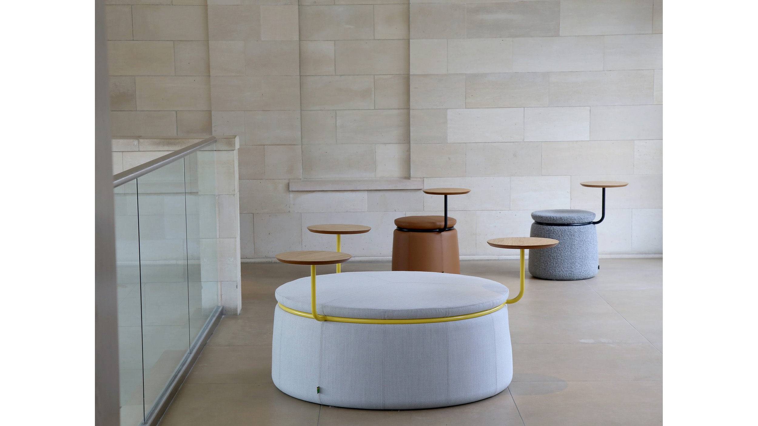 El mobiliario lounge Lasso transforma los espacios abiertos en centros para la colaboración. Ubique los taburetes Lasso de uno o tres asientos juntos en espacios públicos, donde las superficies de trabajo integrado y el soporte opcional para la tecnología (disponible para el taburete de tres asientos únicamente) potencian el trabajo de individuos y equipos. Disponible en una amplia gama de tapizados.