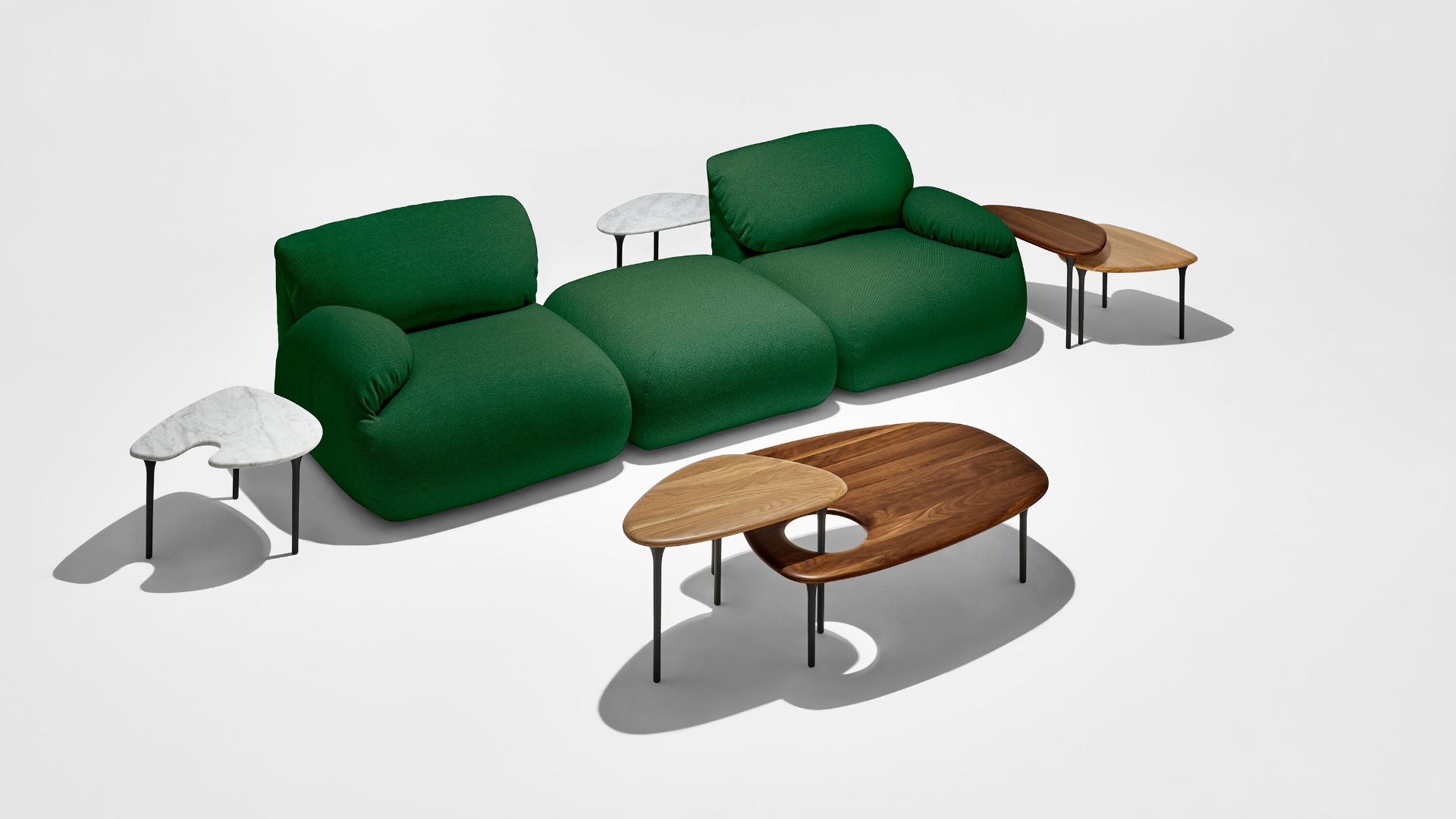 Échale un vistazo al Luva Modular Sofa Group y verás las posibilidades de su forma tan particular. El respaldo sube o baja según cómo prefieras sentarte y las piezas modulares se pueden conectar o separar. Con Luva, no tienes que elegir entre la comodidad o el estilo: la forma y la función se mimetizan en este diseño. Es muy versátil e irresistible a la vista.
