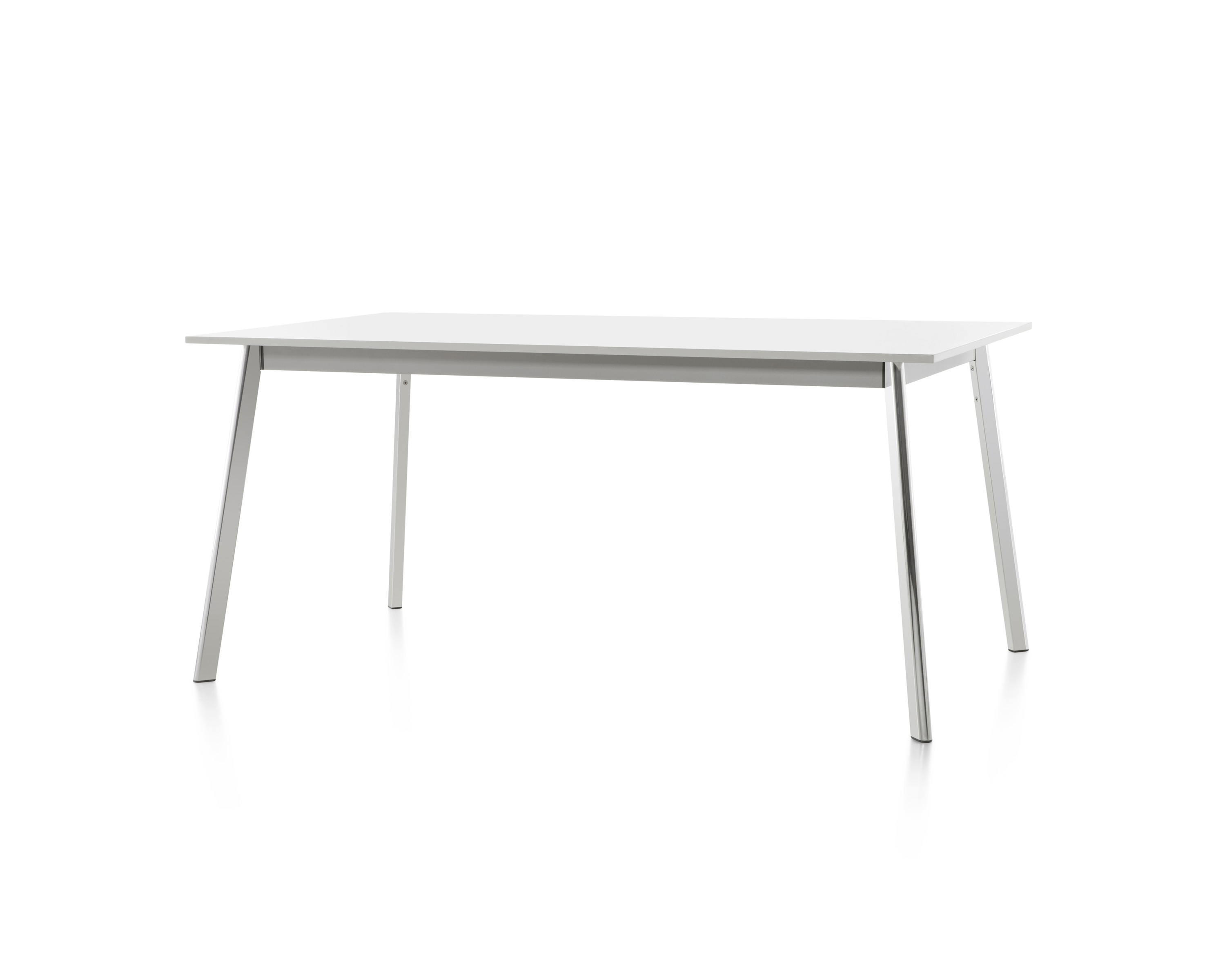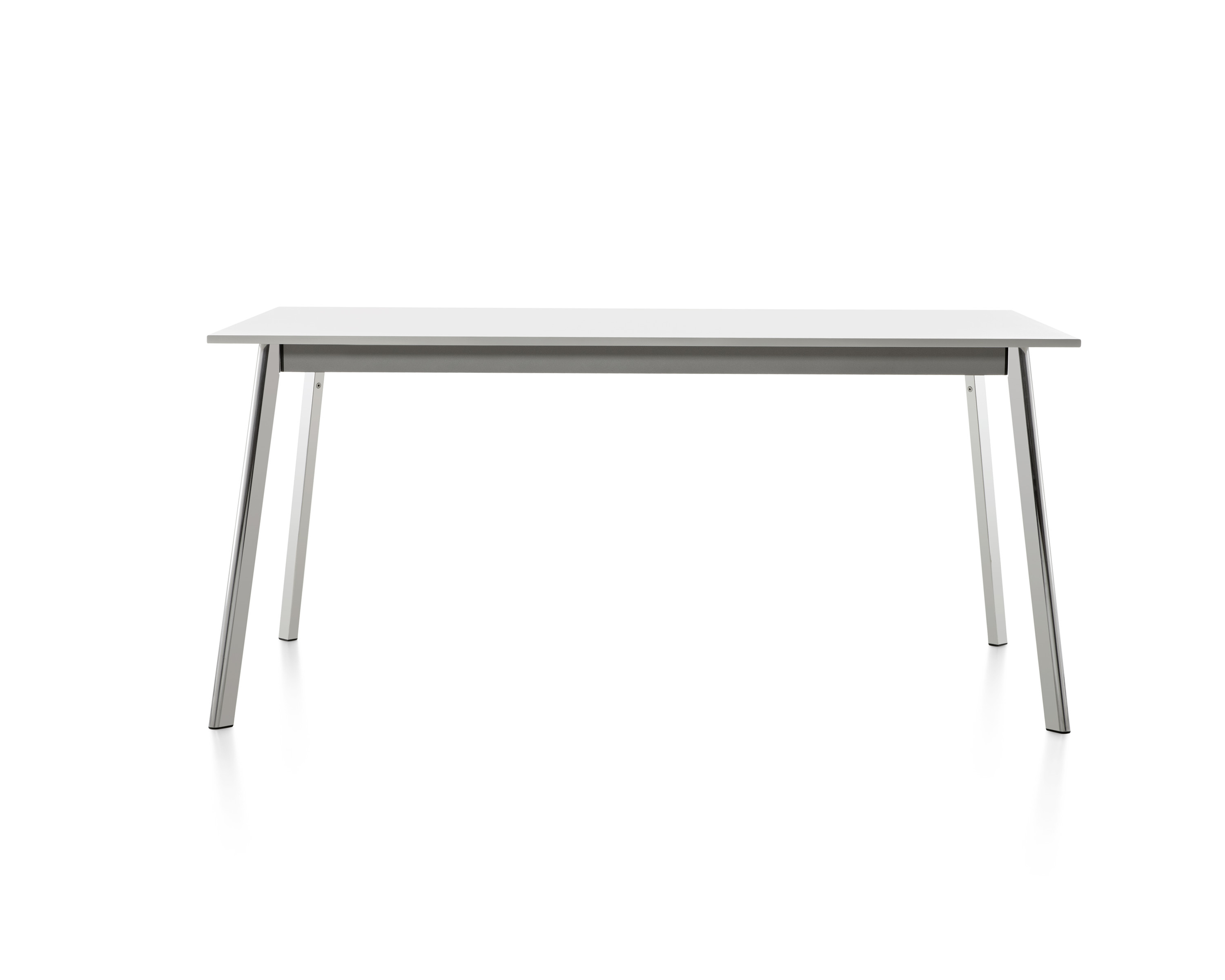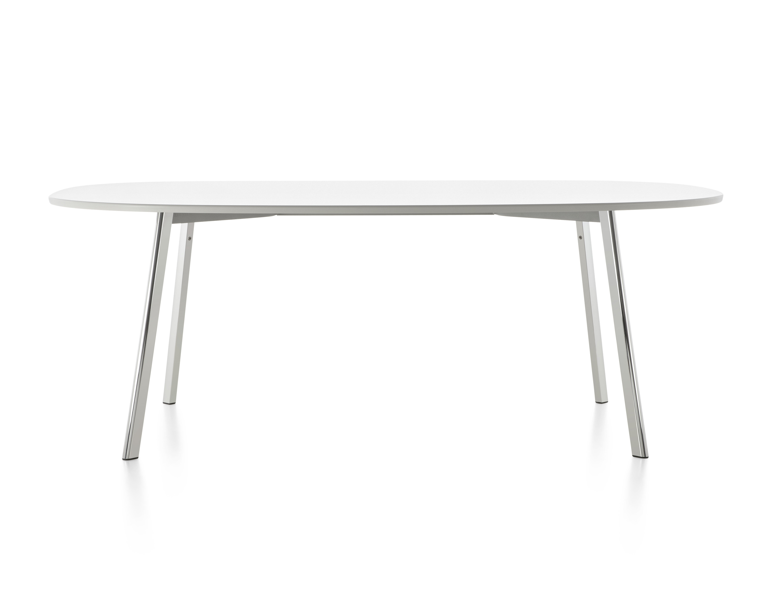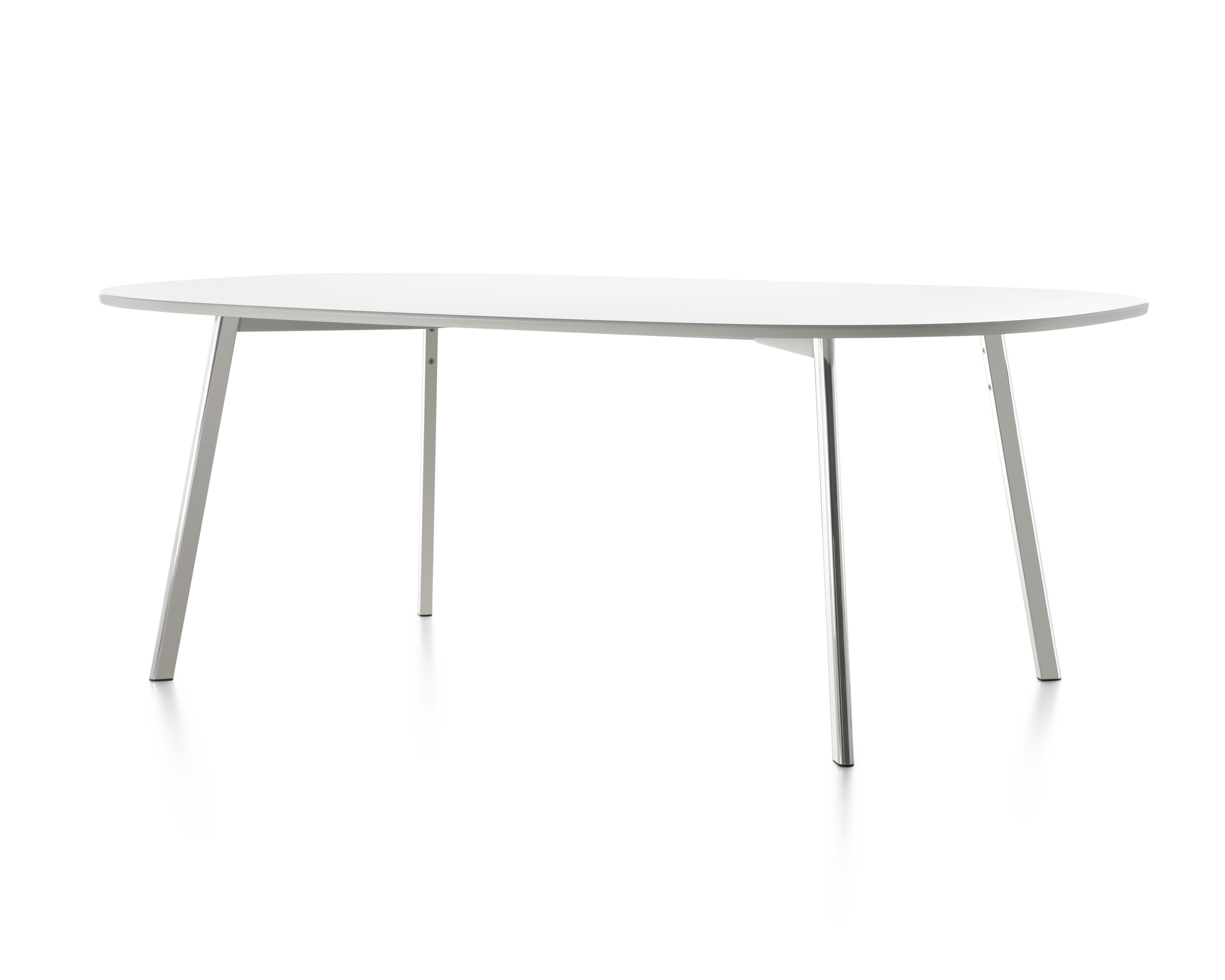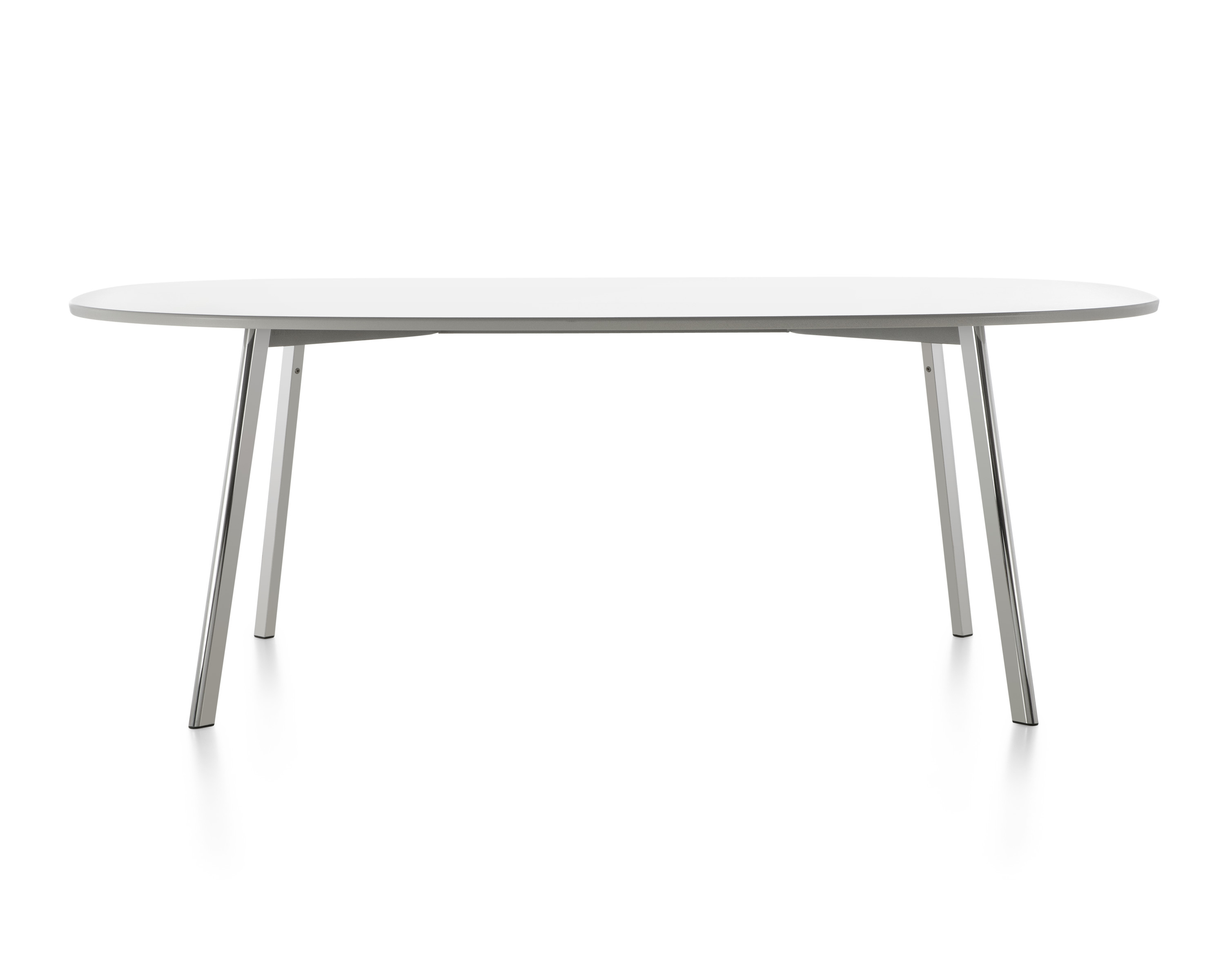La superficie delgada y extensa puede ser de fibra de densidad media (MDF) de 2,54 cm en color blanco o negro, de vidrio transparente o blanco, o de pizarra o quarcita. Las patas de aluminio fundido y la estructura pueden estar pulidas o pintadas en blanco o negro. Todas las superficies excepto los que son de MDF pueden usarse al aire libre.