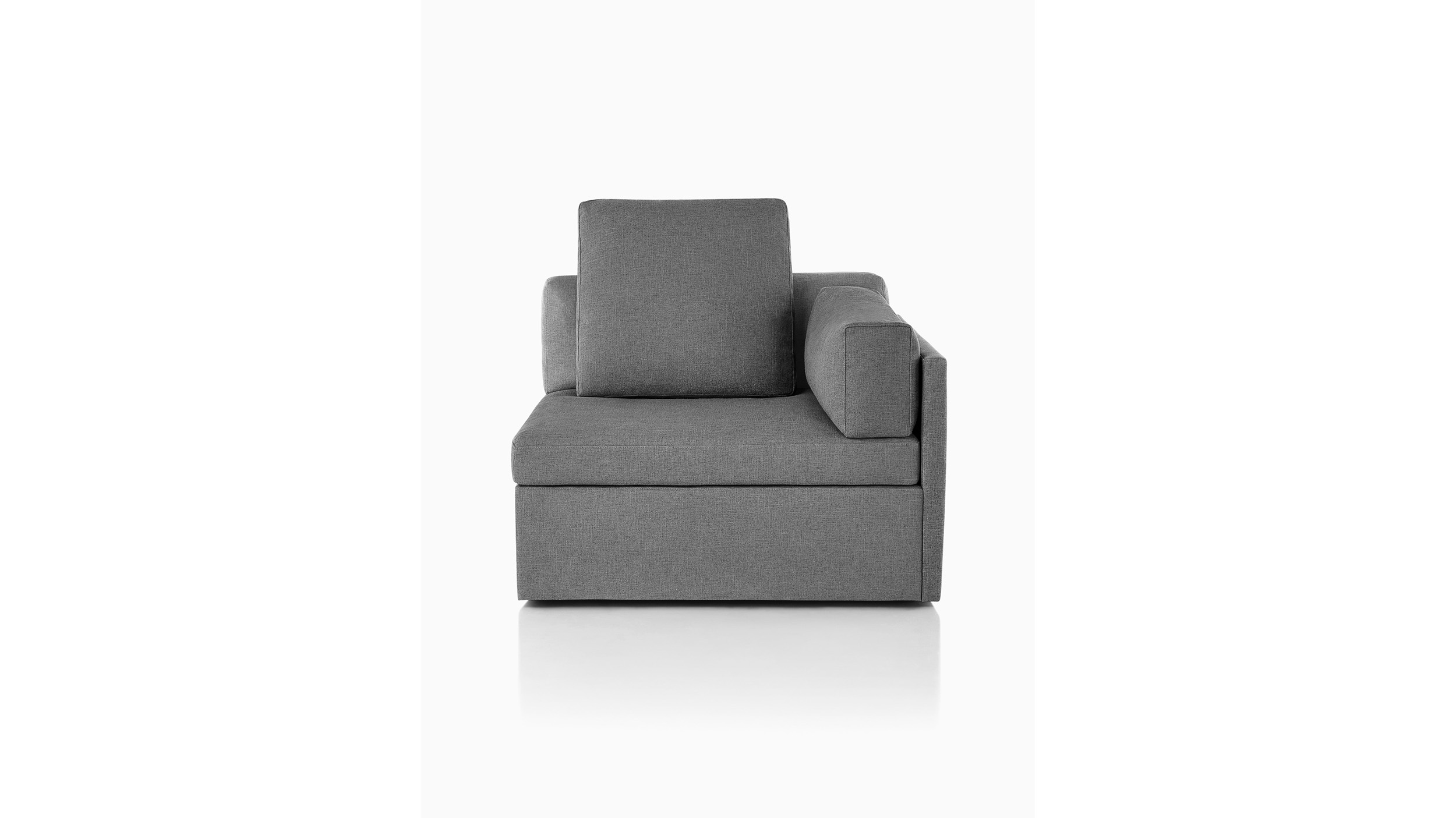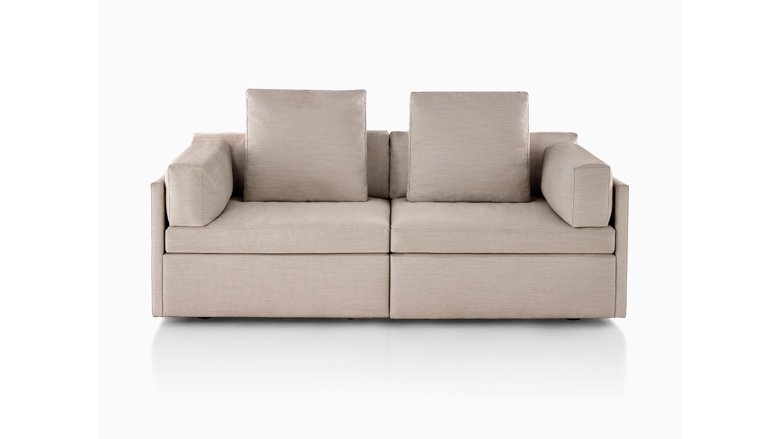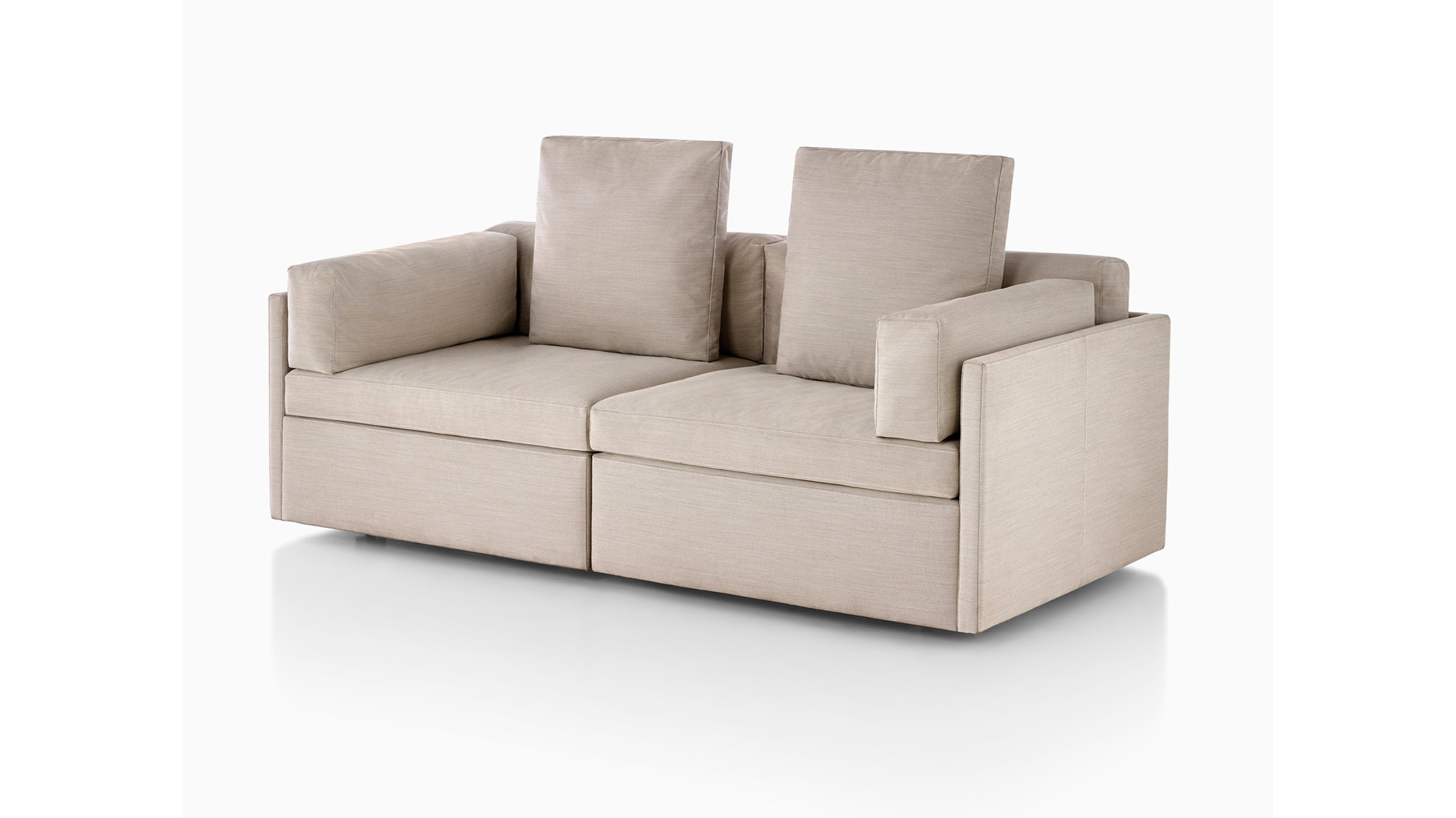 Completamente tapizada y sin patas visibles, la sillería lounge Module ofrece una comodidad y un apoyo lujosos para descansar. El marco contiene dos pulgadas (5 cm) de relleno. Con costuras superiores para un estilo suave, no cuadrado, los cojines del respaldo tienen un relleno de fibra con plumas y plumón. Los cojines laterales desmontables también pueden usarse como suaves reposacabezas. Los cojines sueltos se pueden reorganizar para una comodidad óptima y posturas para sentarse y relajarse.