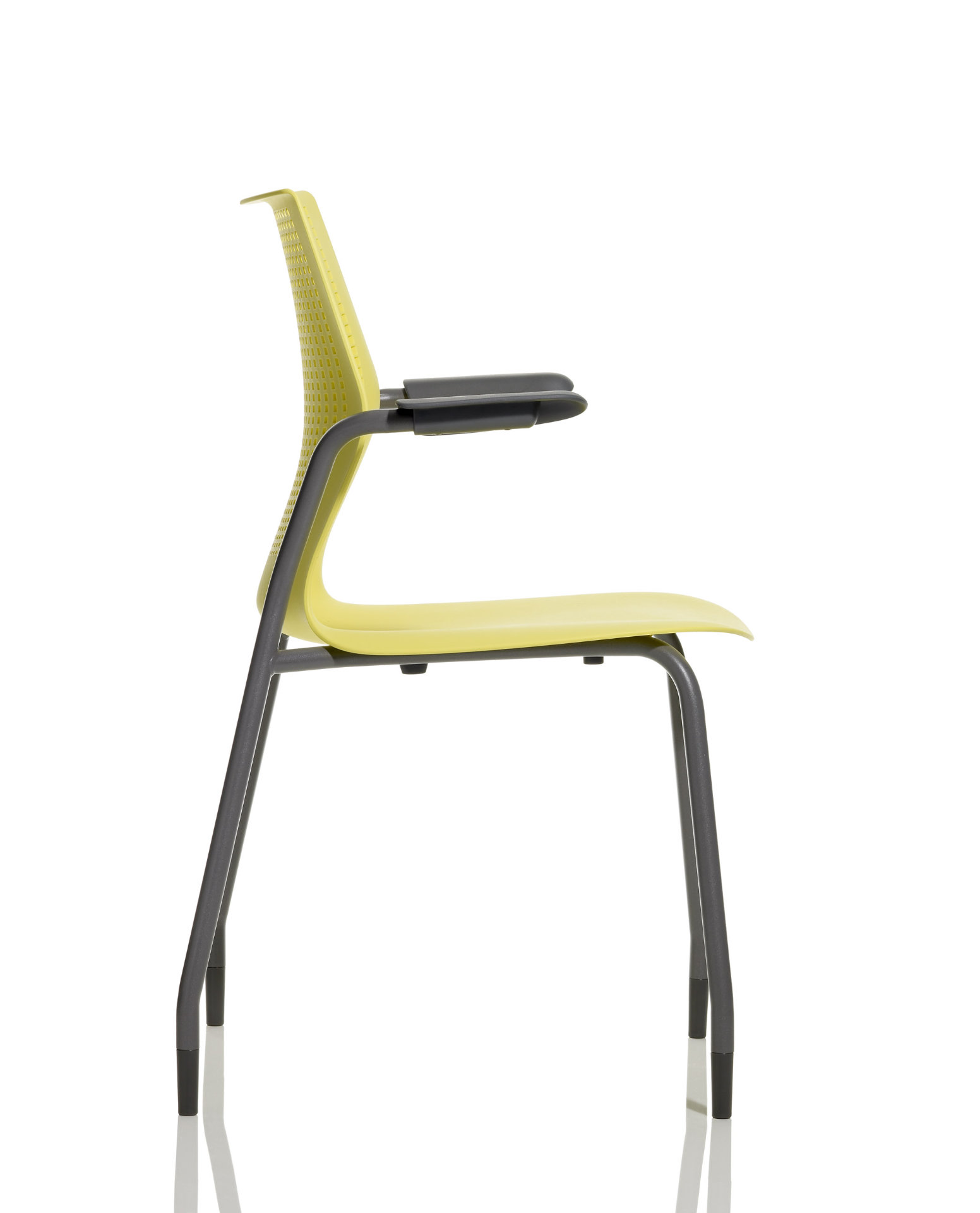 El respaldo completo y curvado permite el movimiento de la parte superior del cuerpo y sostiene la parte inferior de la espalda para posturas erguidas e interactivas, mientras que un asiento suavemente contorneado con esquinas redondeadas y un diseño de brazo en voladizo le permite cambiar de posición fácilmente. Los brazos cuentan con almohadillas contorneadas para apoyarse cuando se sienta de lado.