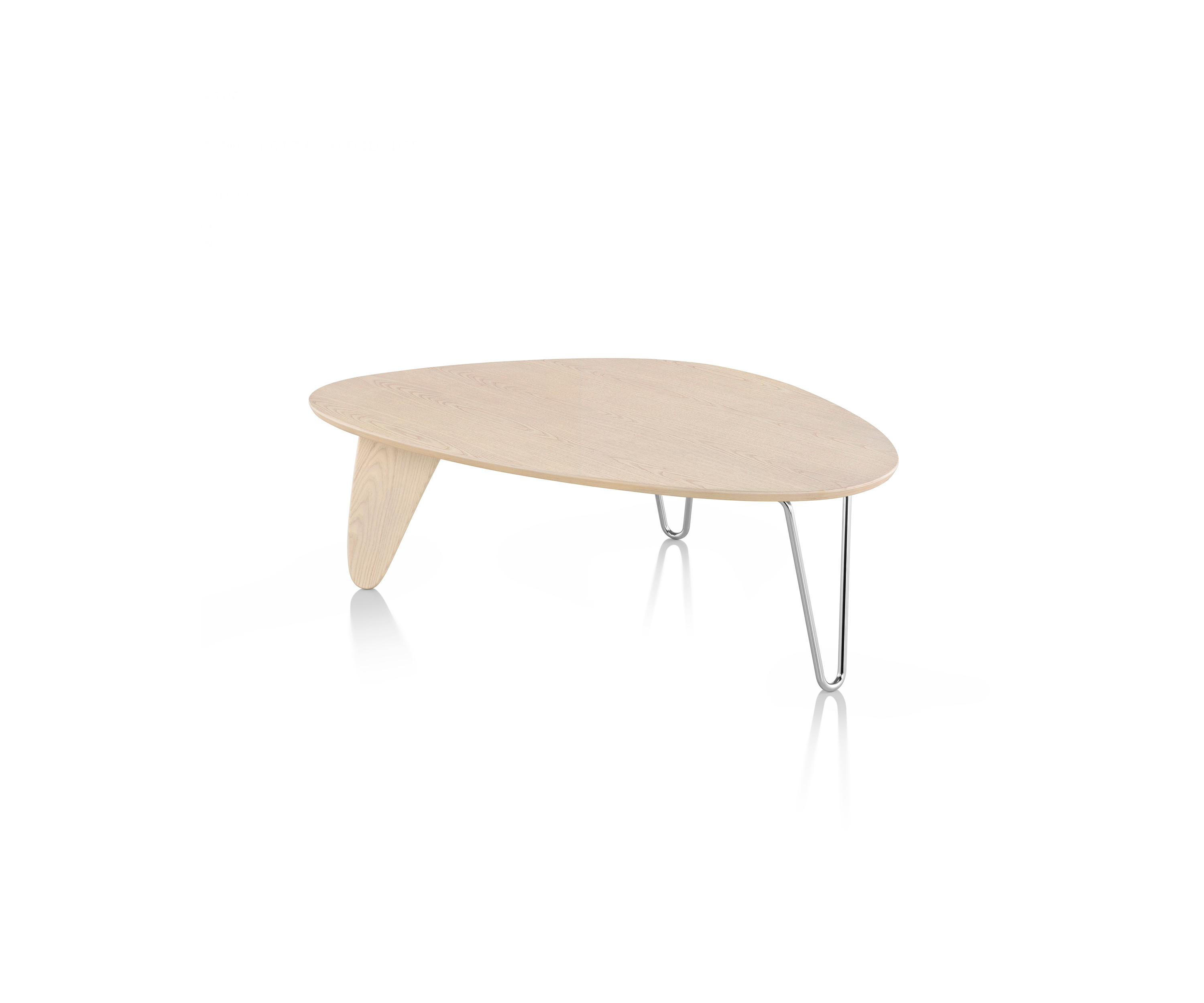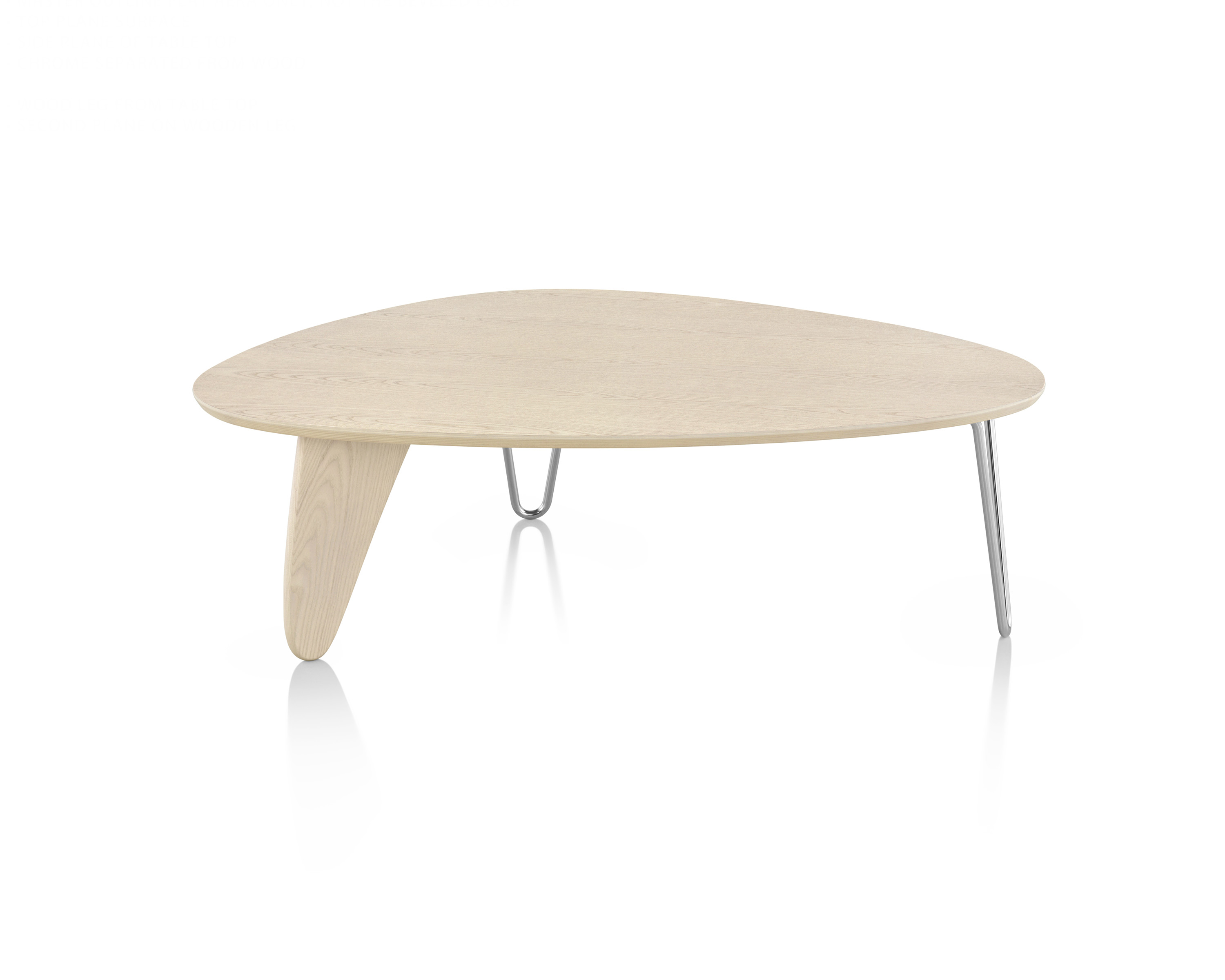 La mesa Rudder Noguchi, pieza de archivo actualizada de 1949, es una mesa de café escultórica aparentemente simple diseñada por Isamu Noguchi. Se afirma sobre dos patas de horquilla de cromo y una de madera que evoca el timón de un barco. Elegante y visualmente ligera, esta mesa tiene patas de acero con baño de cromo trivalente que ofrecen un placentero contraste con el aspecto natural del timón y la tapa, disponibles en acabados de nogal, ébano sobre arce o fresno blanco.