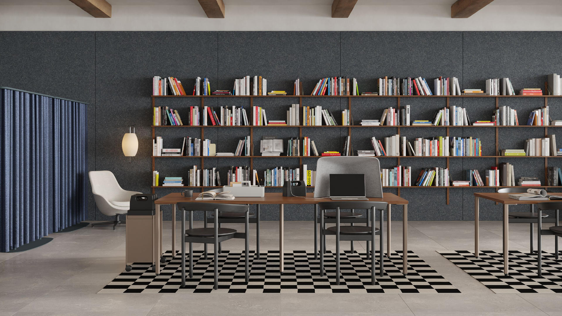 La Cortina independiente OE1 forma un límite suave y permeable para una sensación residencial cálida. Mueve esta pantalla o combínala con otras para dividir o crear espacios de equipo de manera orgánica, mejorar el sentido de comunidad o mejorar la orientación.