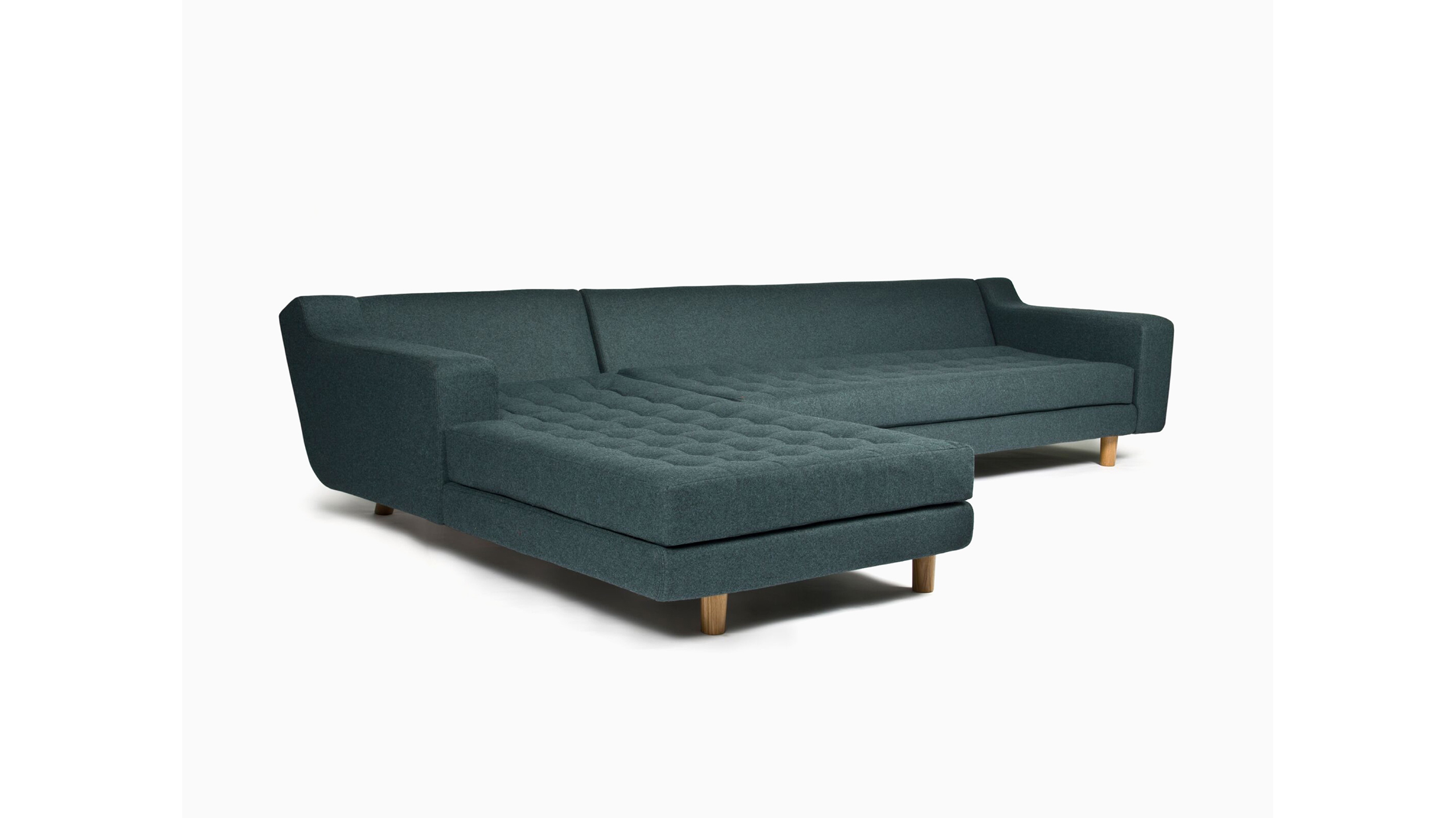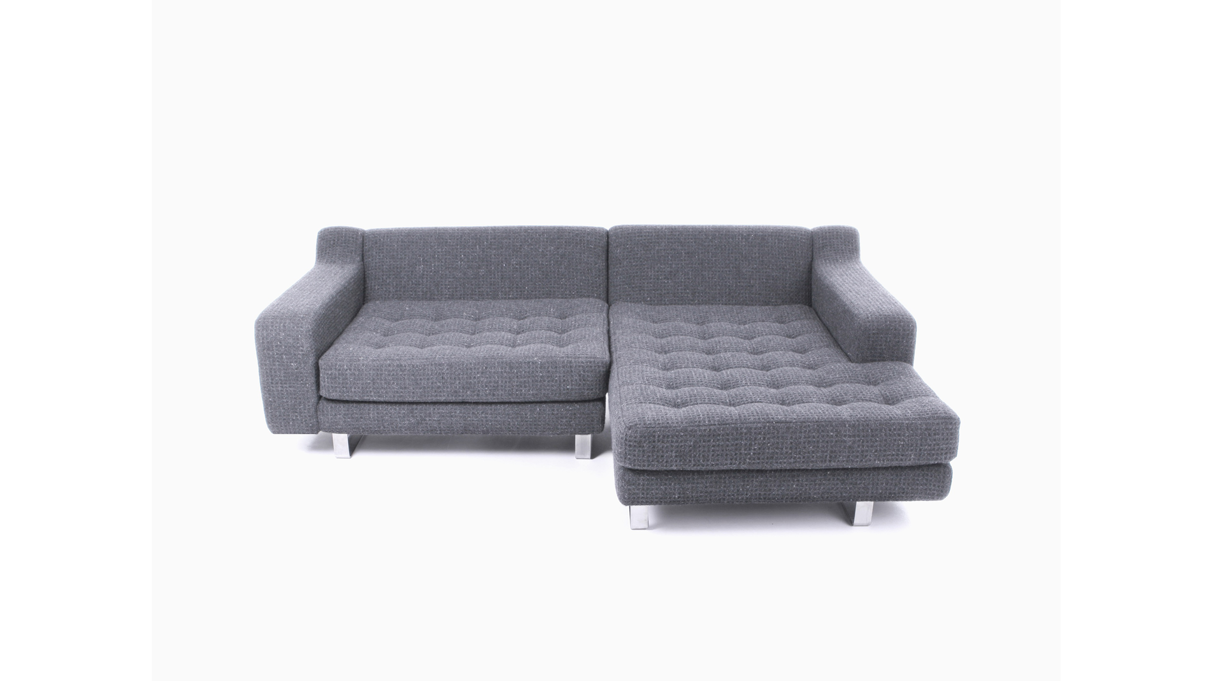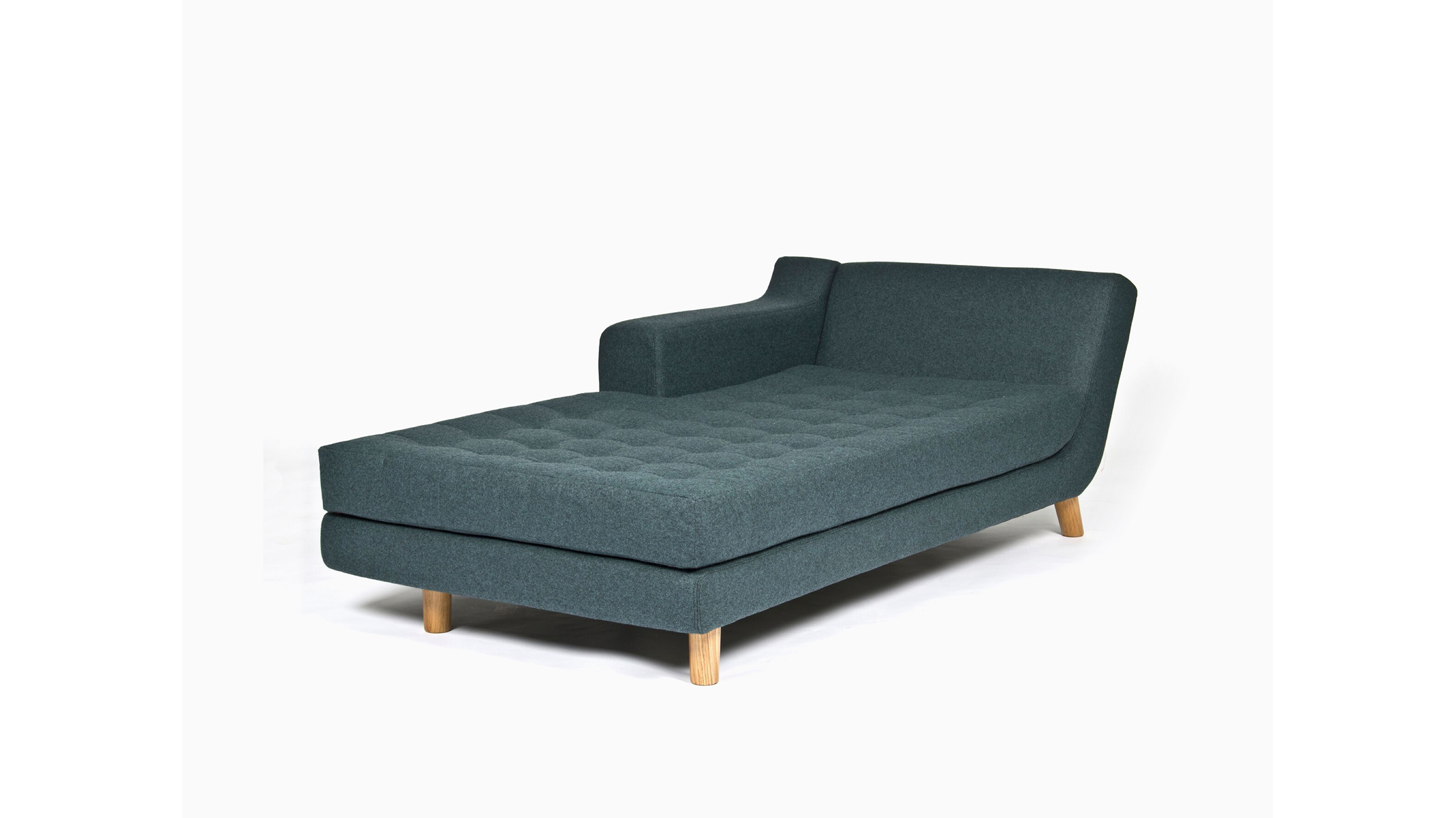 Estírese en el chaise longue Portion. Profundo, bajo y cómodo como sus hermanos de la línea Portion, este chaise longue contemporáneo cuenta con el mismo respaldo reclinado, asiento capitoné y aspecto preciso y elegante. Puede personalizarlo al elegir entre diferentes telas para el tapizado, distintas bases, configuraciones con brazo a la derecha o a la izquierda, y costuras y botones en contraste.