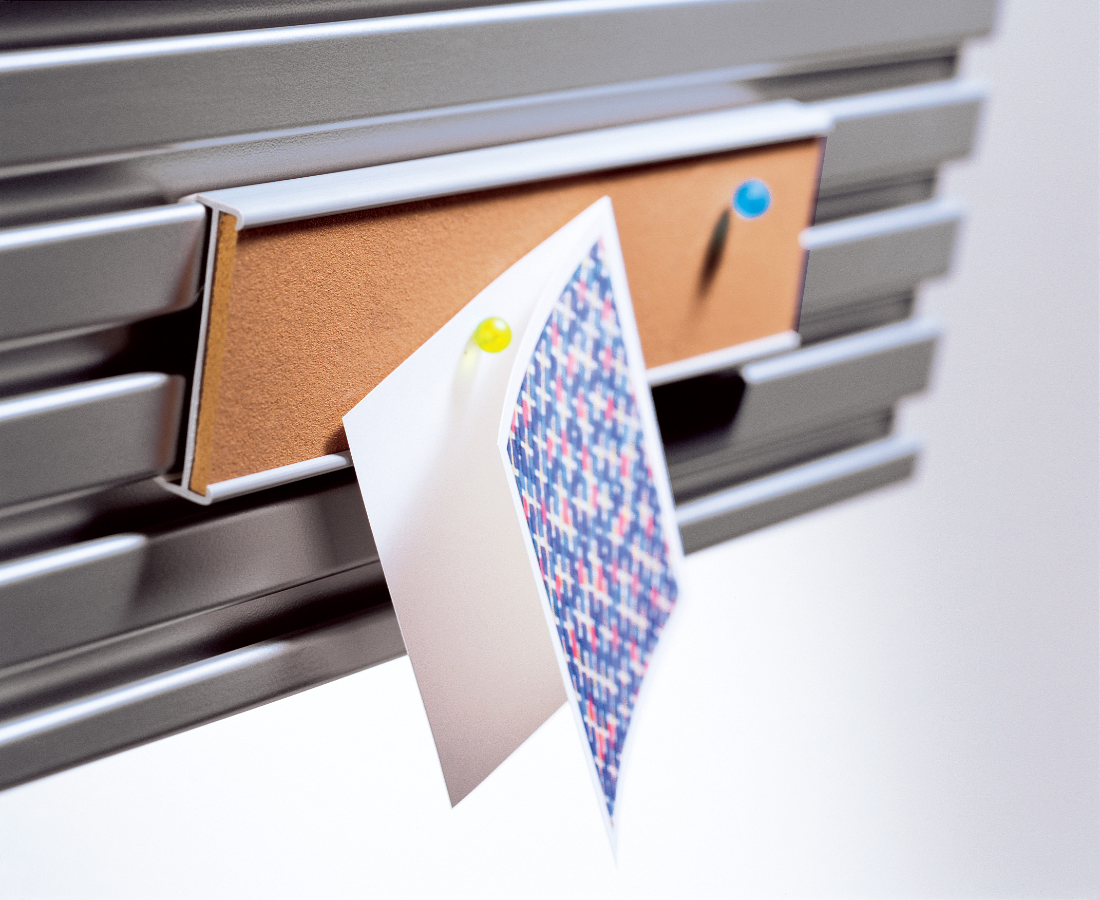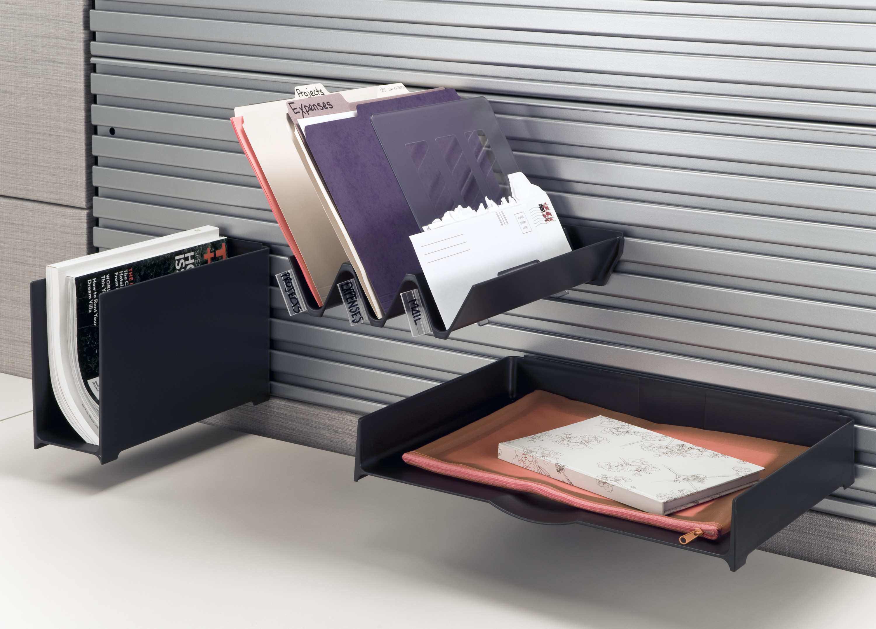 Amplíe sus opciones con un riel portaherramientas fijado a superficies, diseñado para sostener accesorios, como bandejas para papel, broches sujetadores, sujetadores de documentos o clips grupales. Puede sujetarse a superficies con un espesor de 1,3 cm a 4,10 cm.