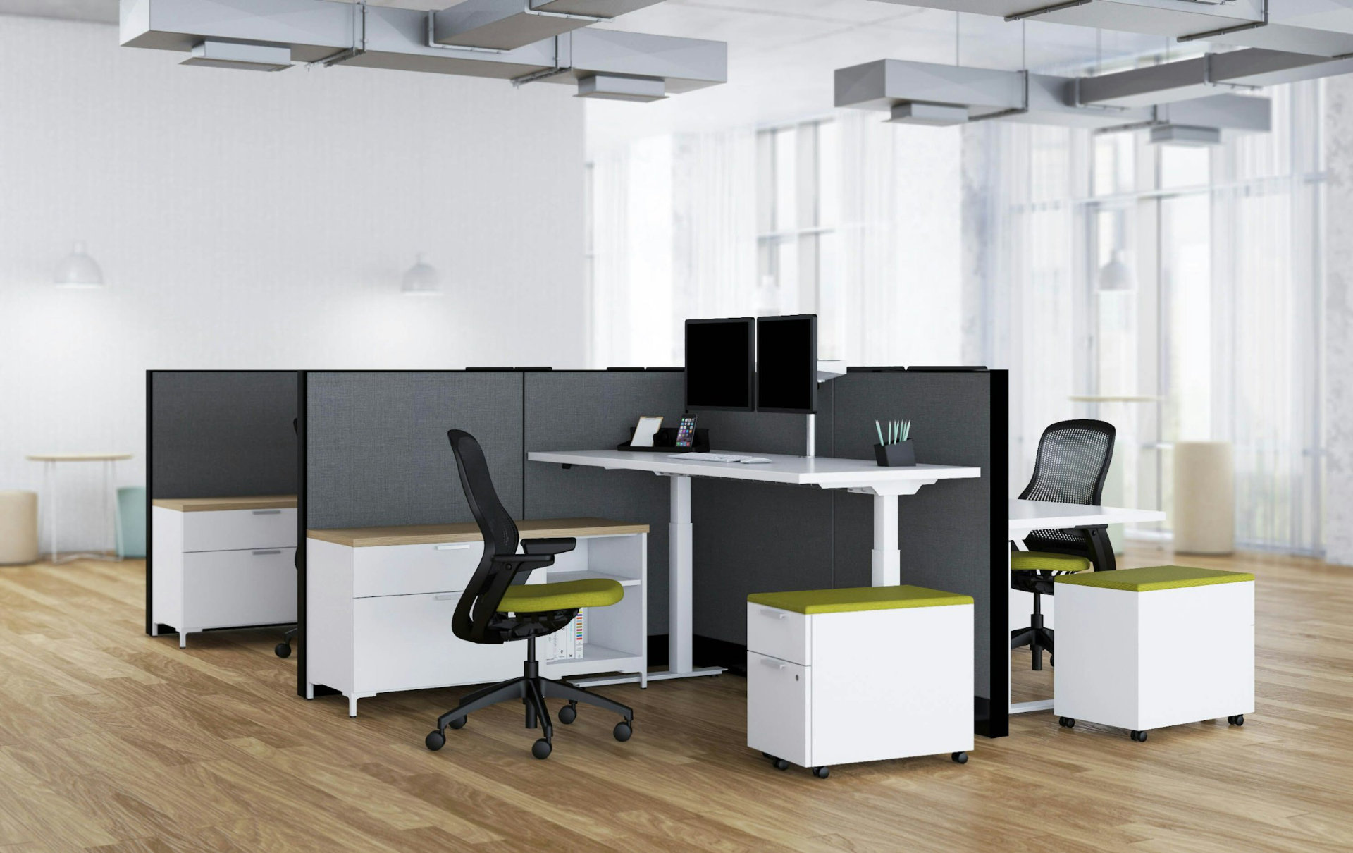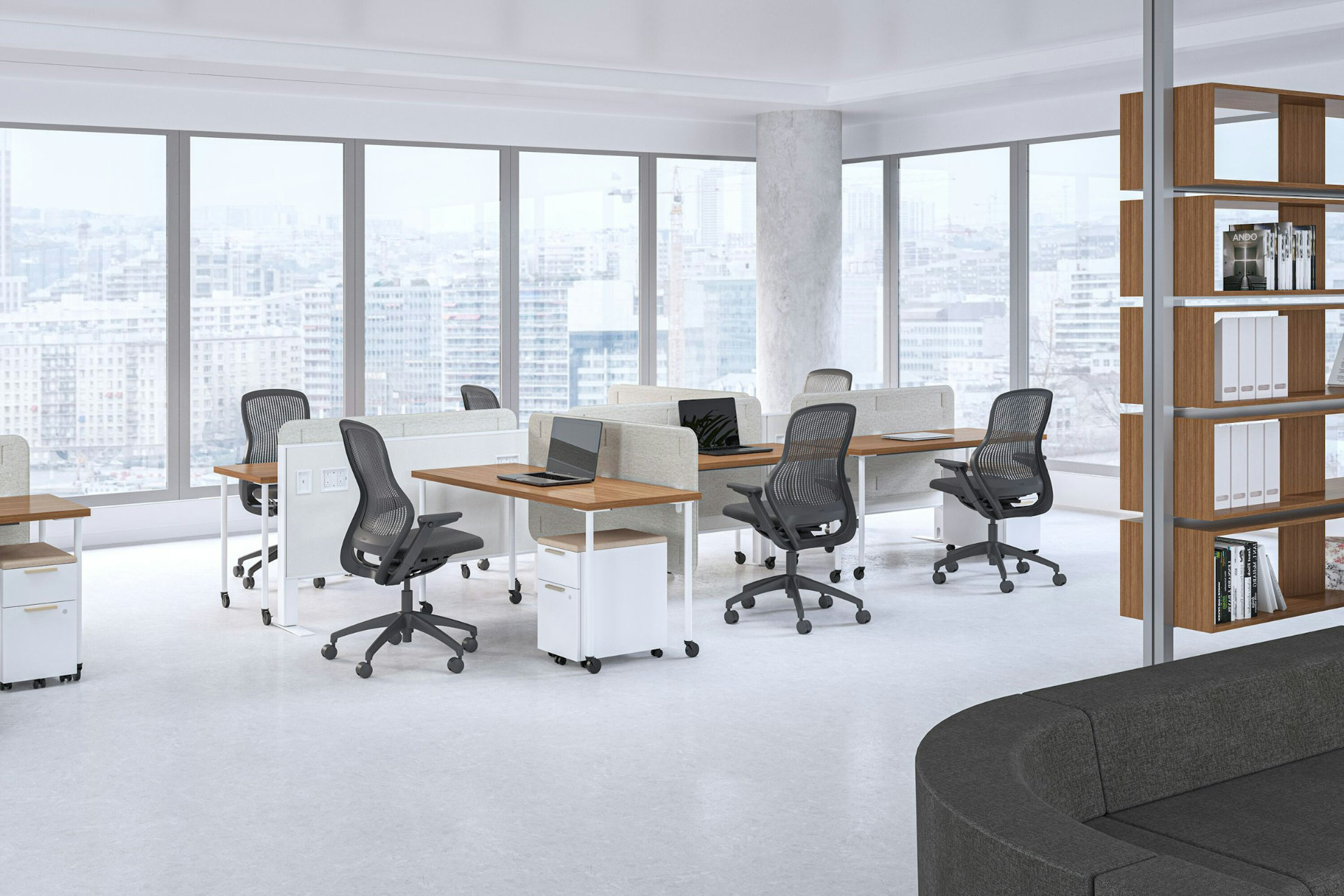 Innovadora en su simplicidad, esta silla de trabajo minimiza los materiales y componentes. El diseño sencillo aprovecha materiales flexibles y duraderos que responden a sus movimientos, brindando comodidad y soporte ergonómico durante todo el día sin interrumpir su flujo de trabajo.