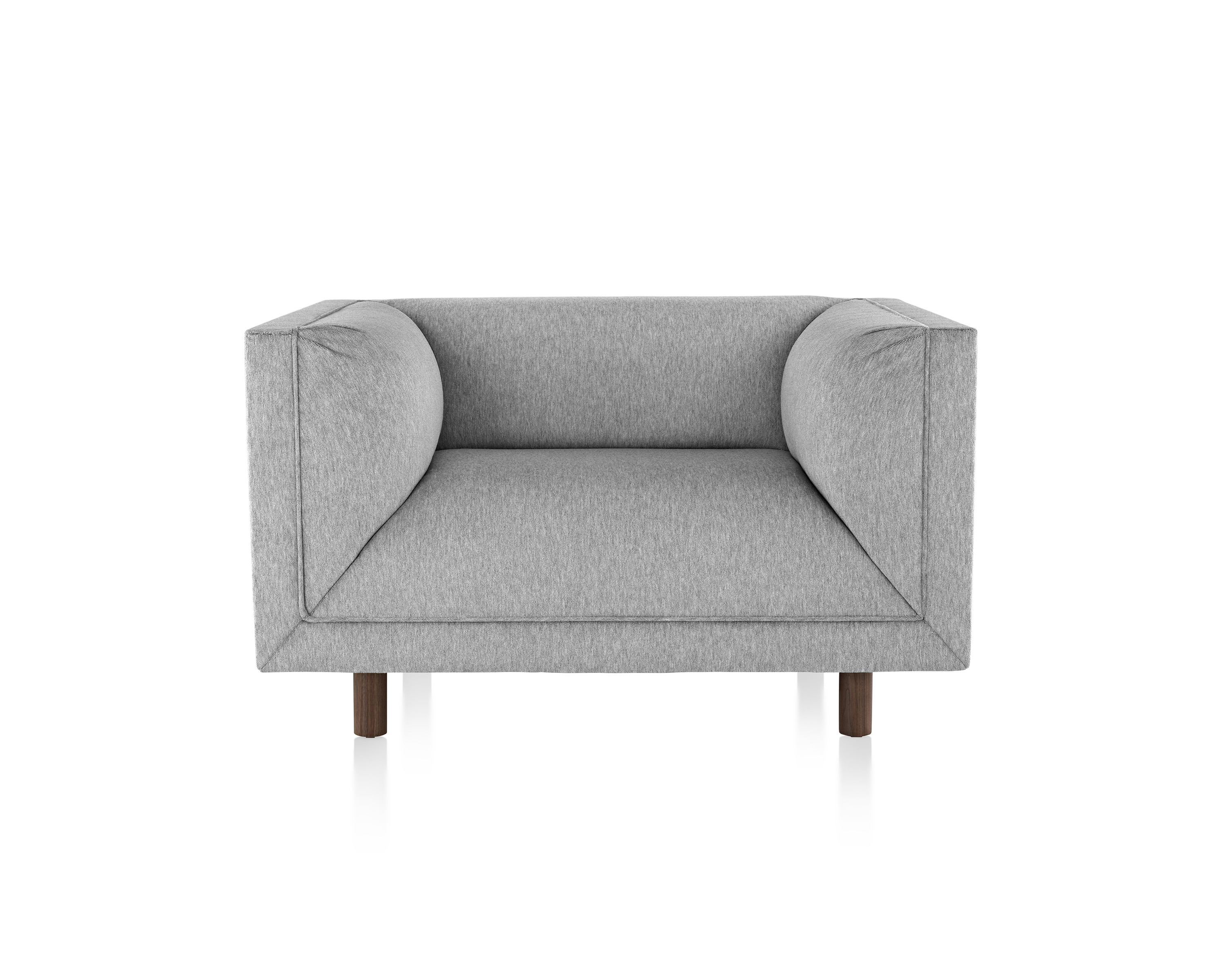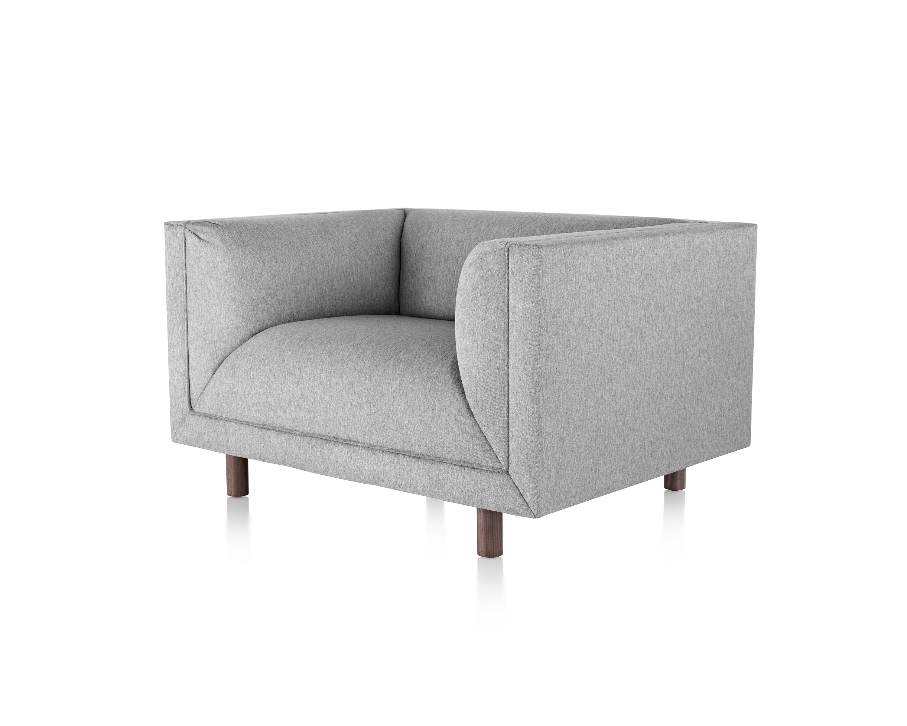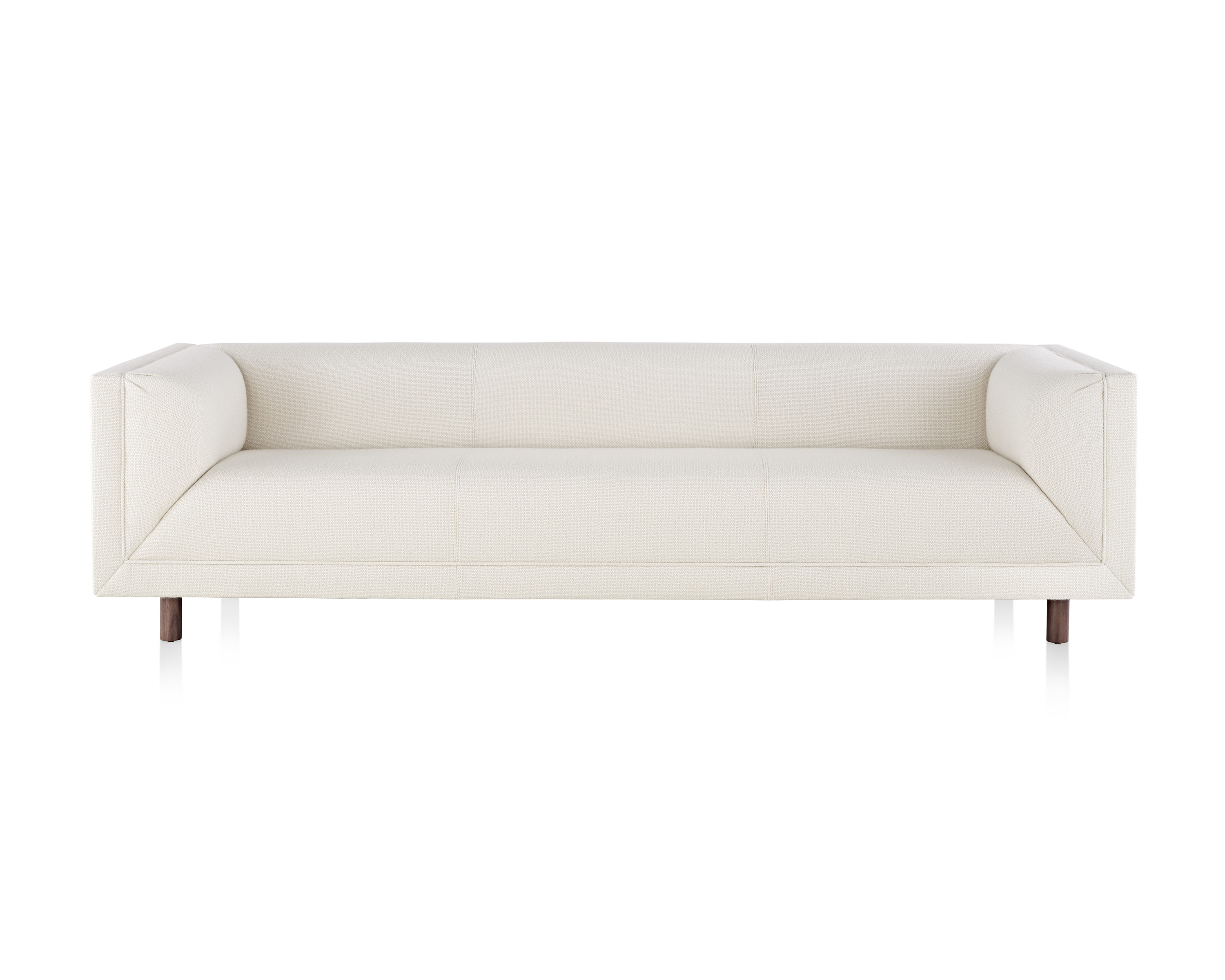 El diseño sensual y minimalista del Rolled Arm Sofa permite que sea desplazado fácilmente de espacios comerciales a espacios residenciales. Su generoso diseño arquitectónico, baja altura y tapicería nítidamente angulada se reflejan en una elegante silueta. El sofá está asentado sobre las patas de madera empotradas, se encuentra disponible en fresno o nogal, y se fabrica en tres tamaños o en versión club chair.