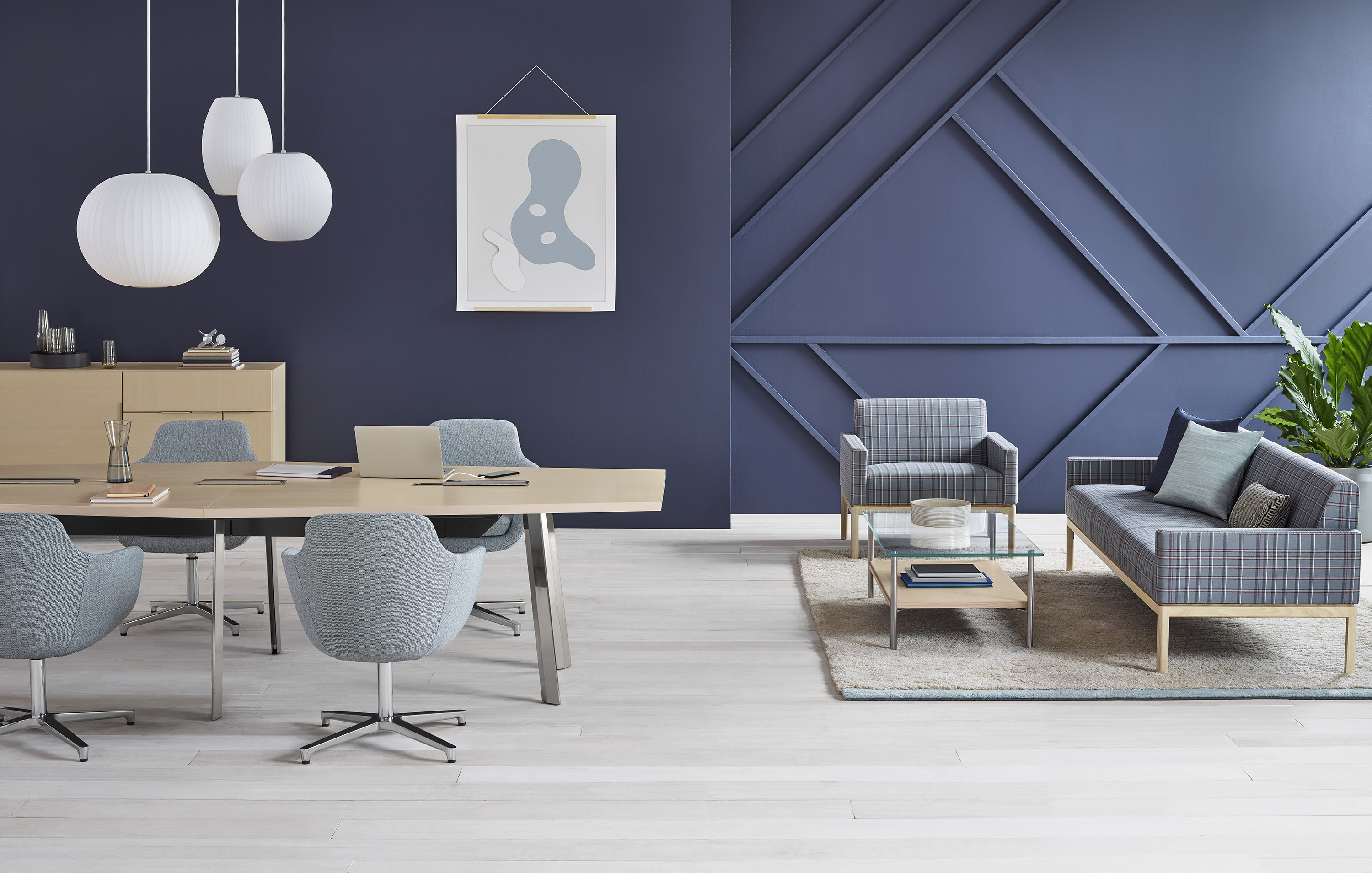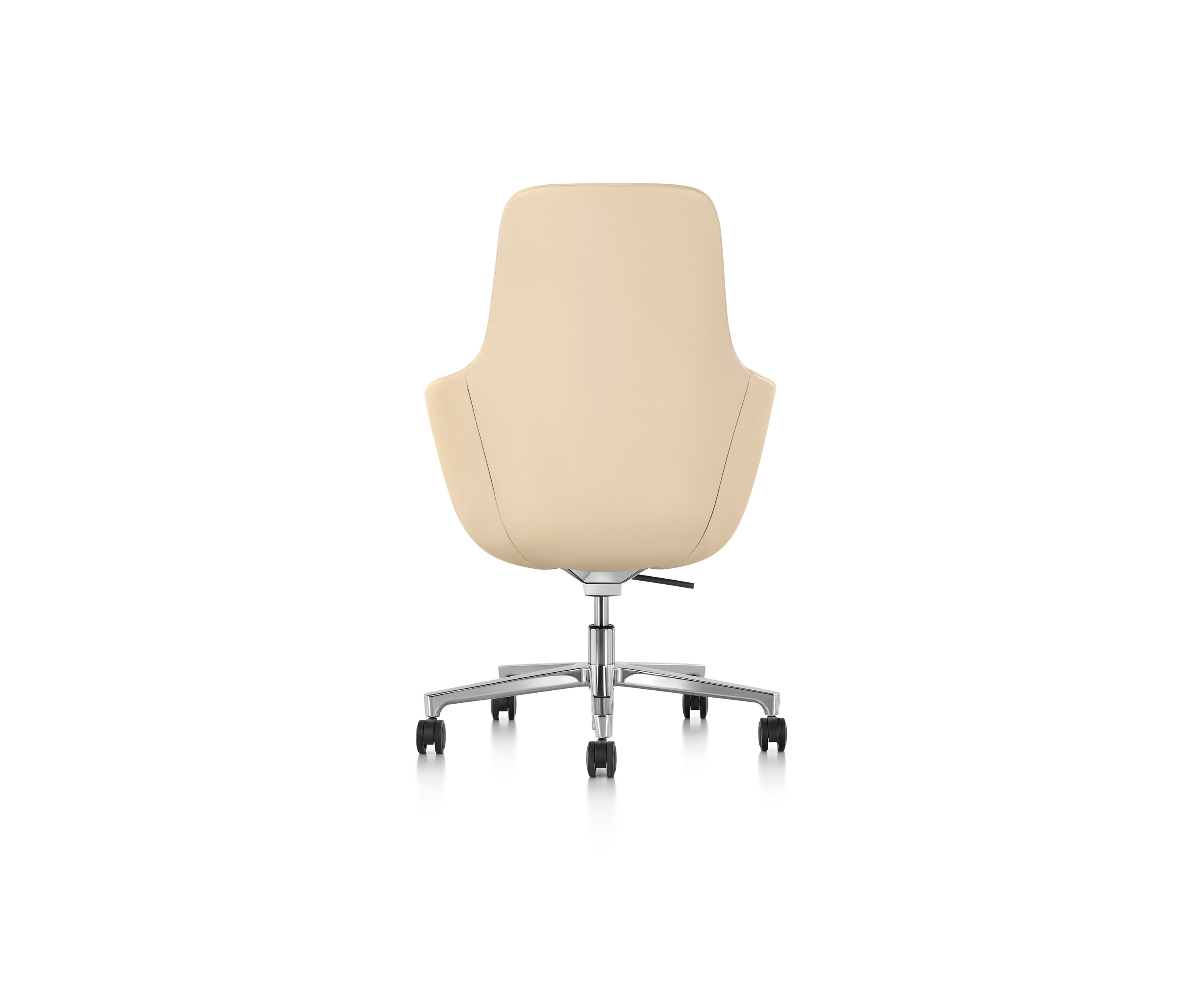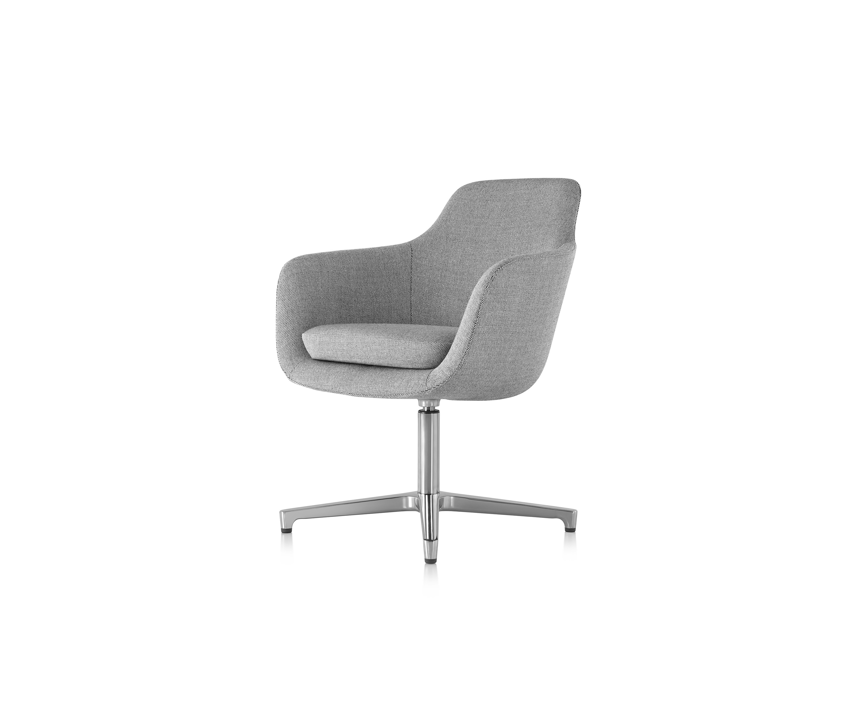 Saiba está disponible con el respaldo medio o alto, como silla lounge de altura fija con una base de estrella de cuatro puntas, o como una silla ejecutiva de altura ajustable con una base de estrella de cinco puntas y ruedas giratorias. Su impecable confección, una paleta sofisticada de telas y una base pulida o negra contribuyen a su elegancia atemporal.
