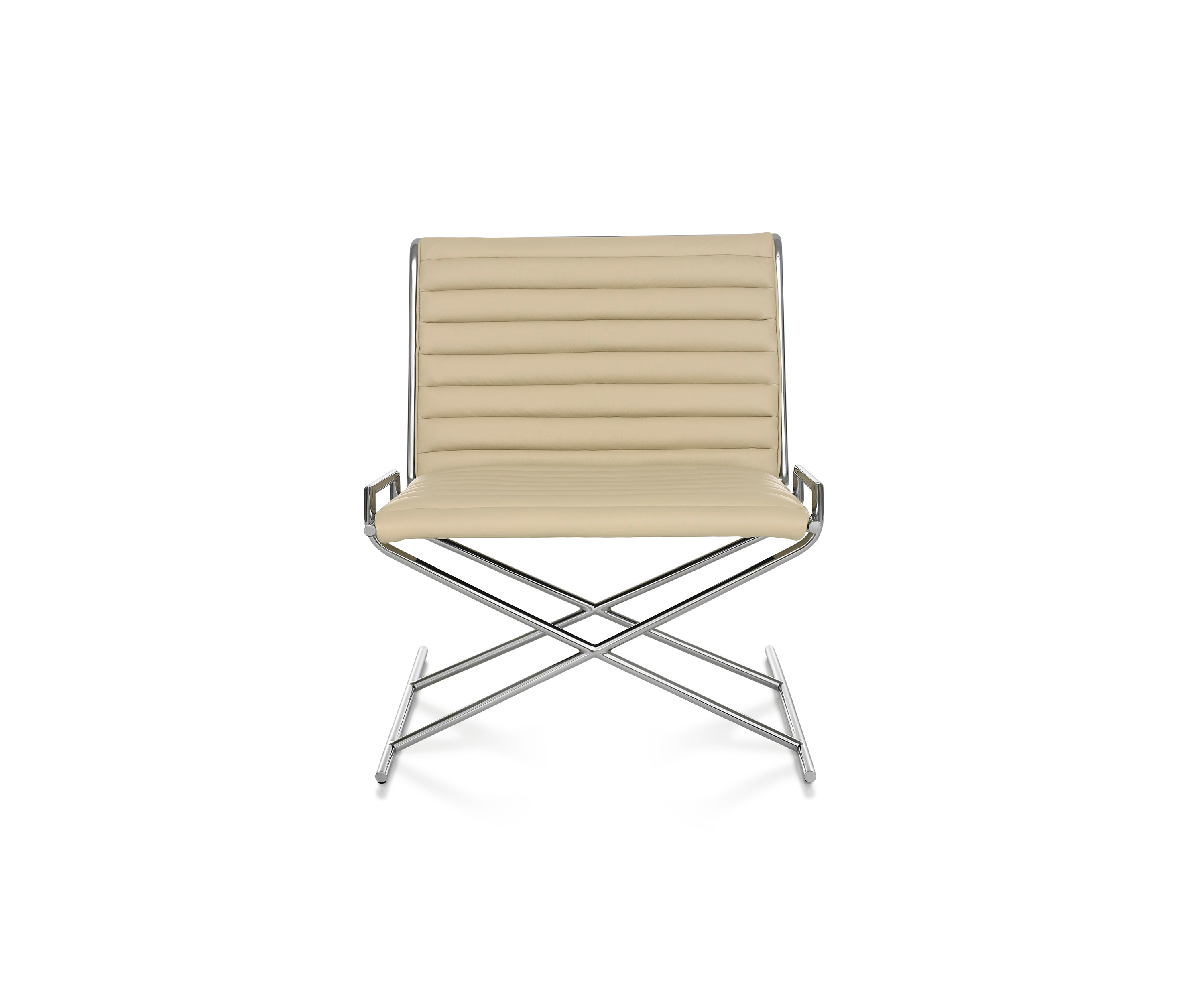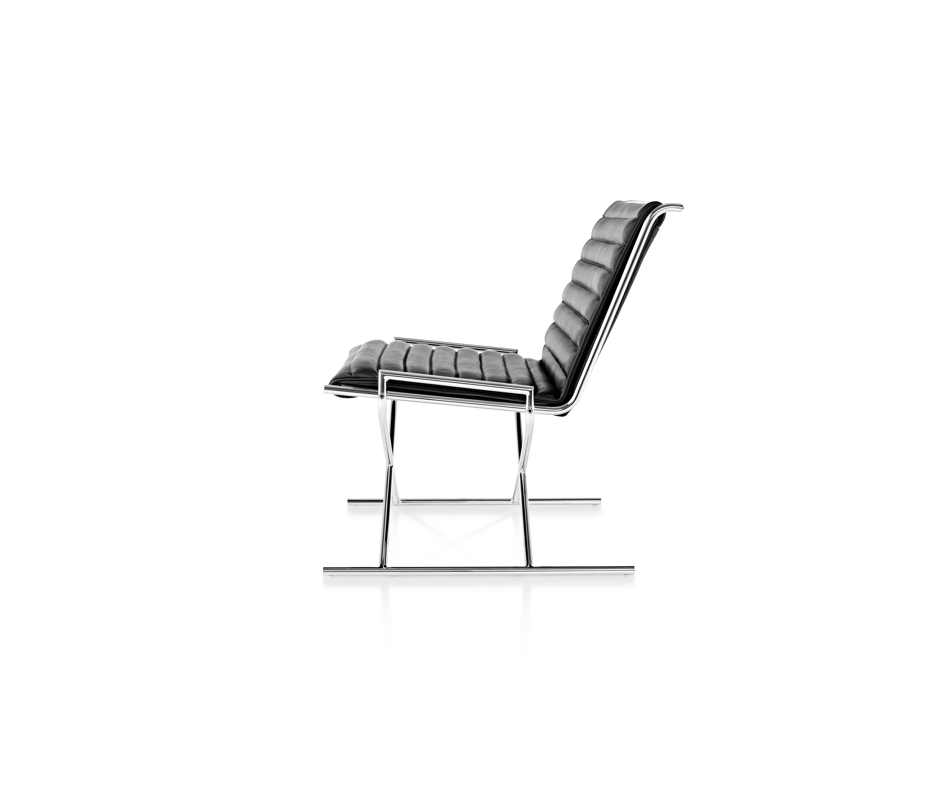 La estructura tubular soldada en forma de X y montada en rieles paralelos es una declaración audaz. La silla está tapizada en casi cualquier tela o cuero disponible. Su asiento y respaldo acunan a quien se sienta. El diseño distintivo y su comodidad acogedora son los dos motivos de permanencia de Sled desde 1966.
