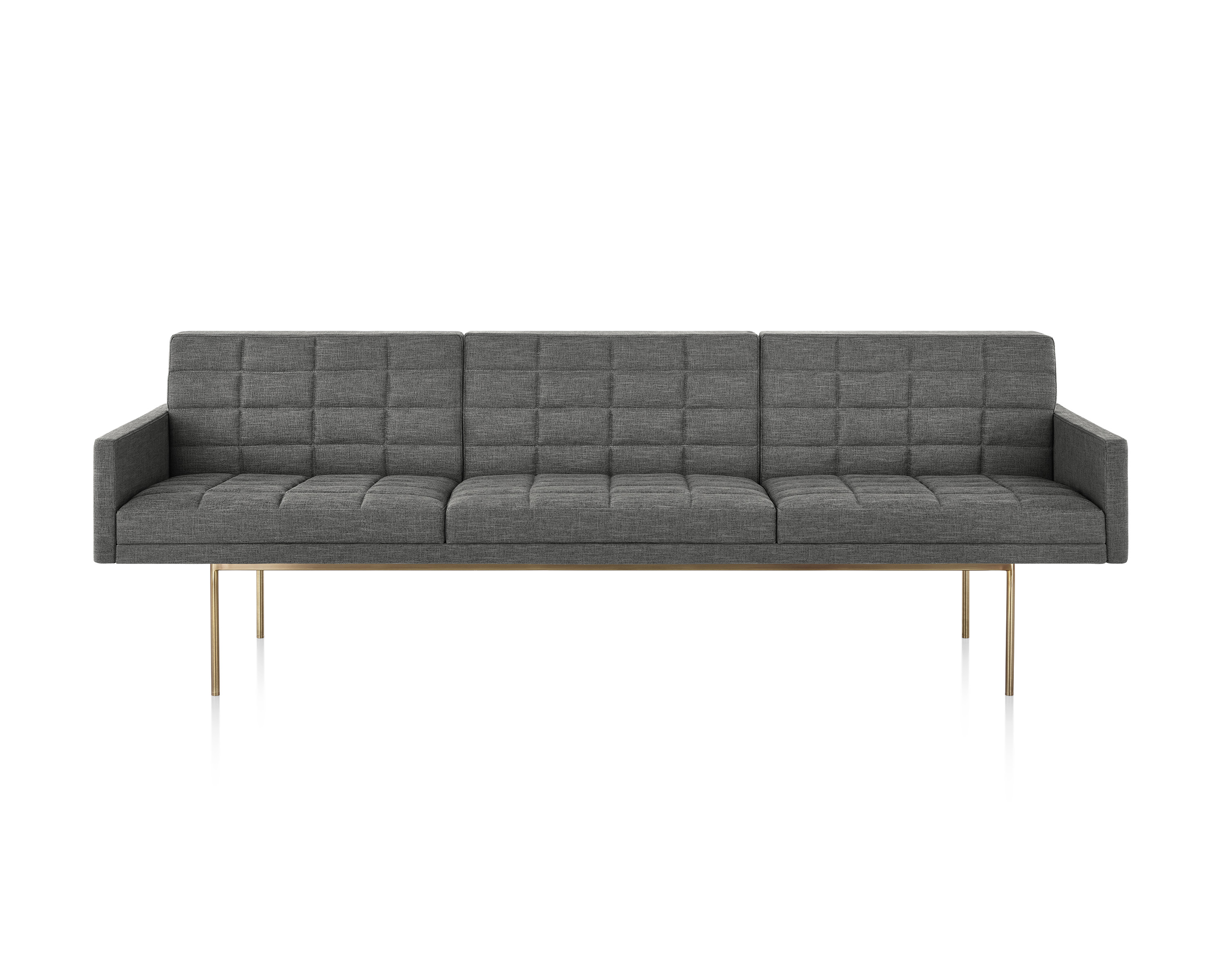 Presenta un perfil bajo y elegante gracias a la banda horizontal que forman el respaldo y los brazos (opcionales). Su apariencia es aún más liviana debido a la tapicería a medida, esmerada, que cubre los almohadones delgados de espuma de doble densidad. Cada pieza está disponible en una amplia gama de tapizados con o sin acolchado.