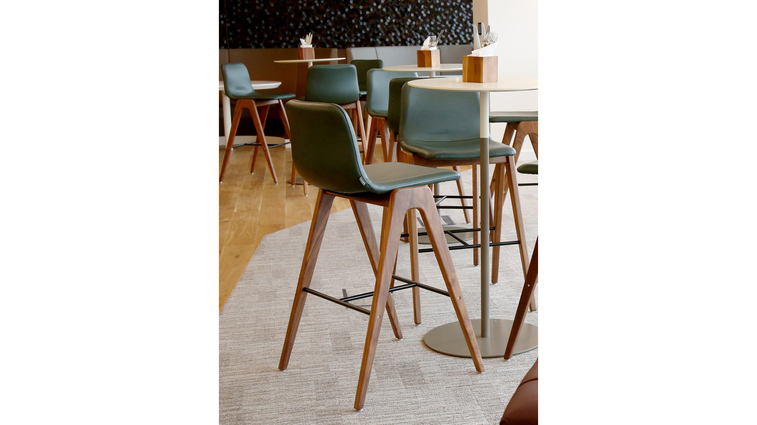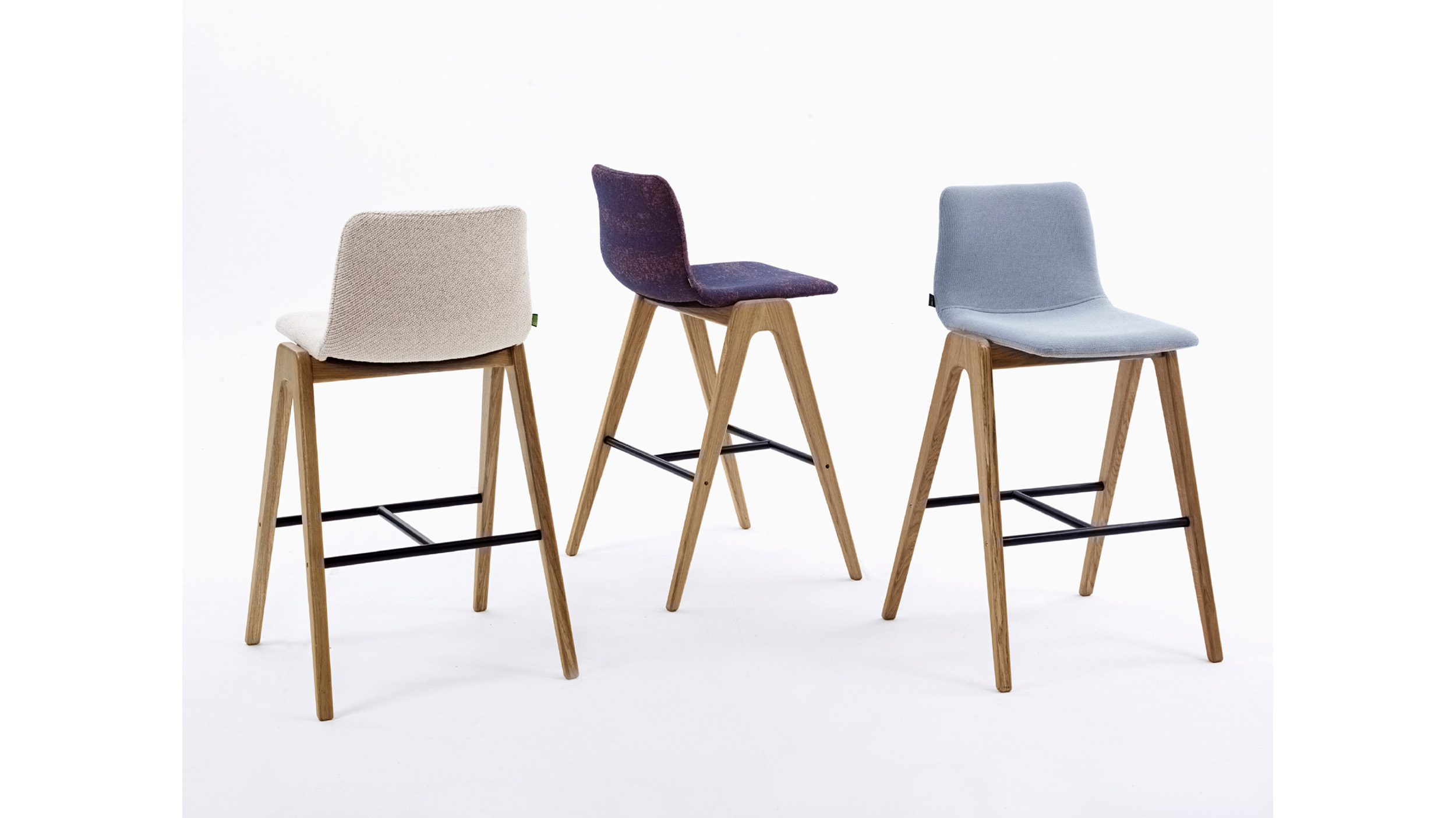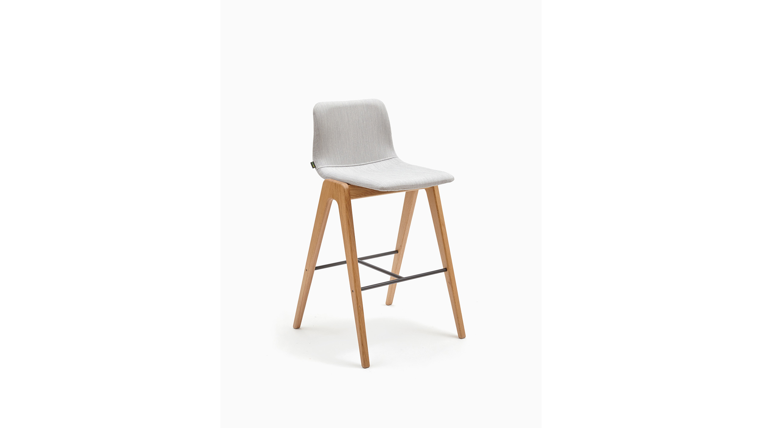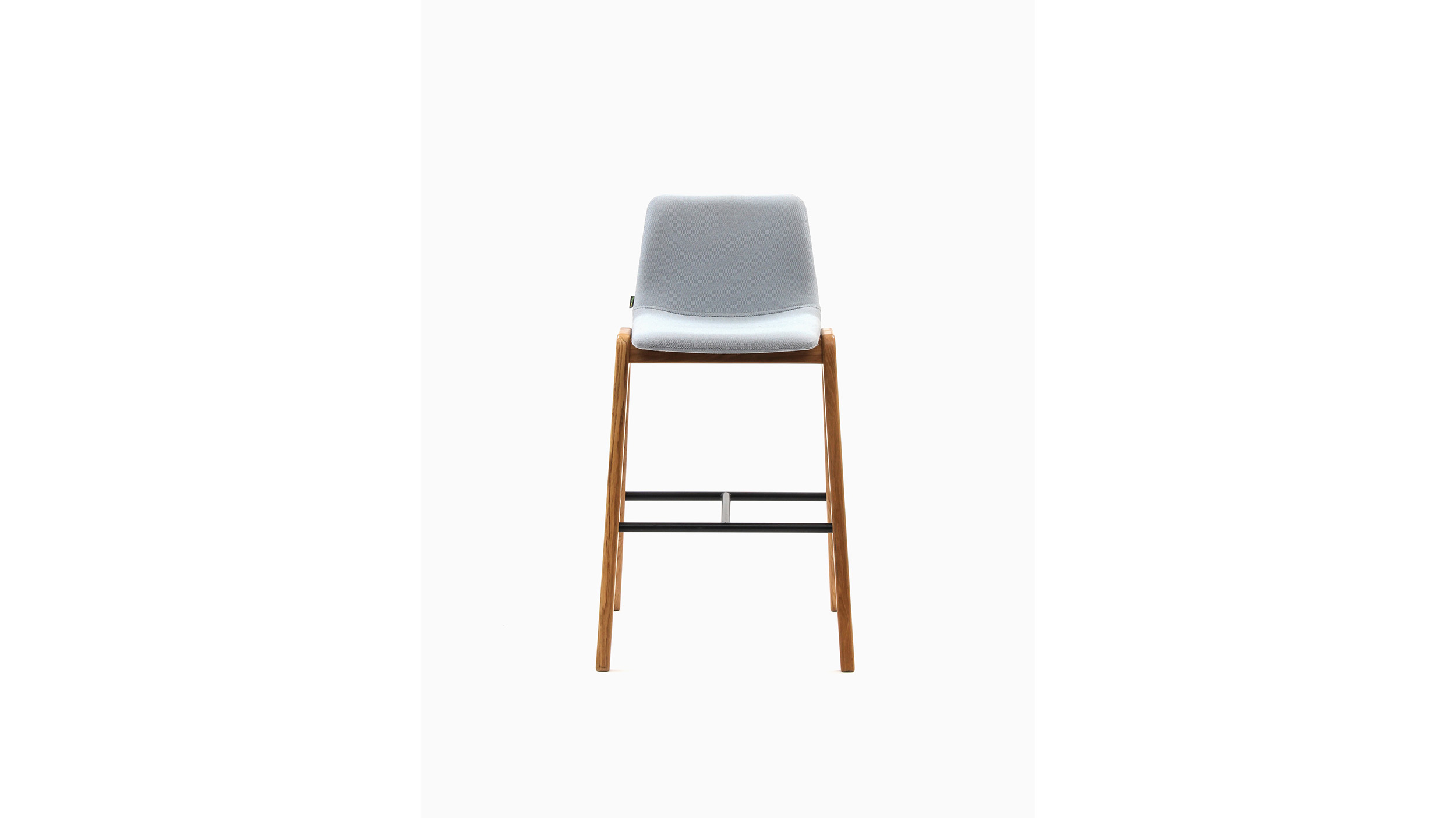 El asiento envolvente de la silla alta de madera Viv, colocado sobre largas patas de madera dura que se afinan a medida que se acercan al piso, le otorga un perfil elegante y estilizado. Para lograr un aspecto prolijo y elegante, la carcasa del asiento usa madera laminada moldeada en 3D con espuma de alta densidad y viene exquisitamente tapizada. Disponible en dos alturas, la base de madera maciza es ensamblada a mano y viene sellada con laca mate.