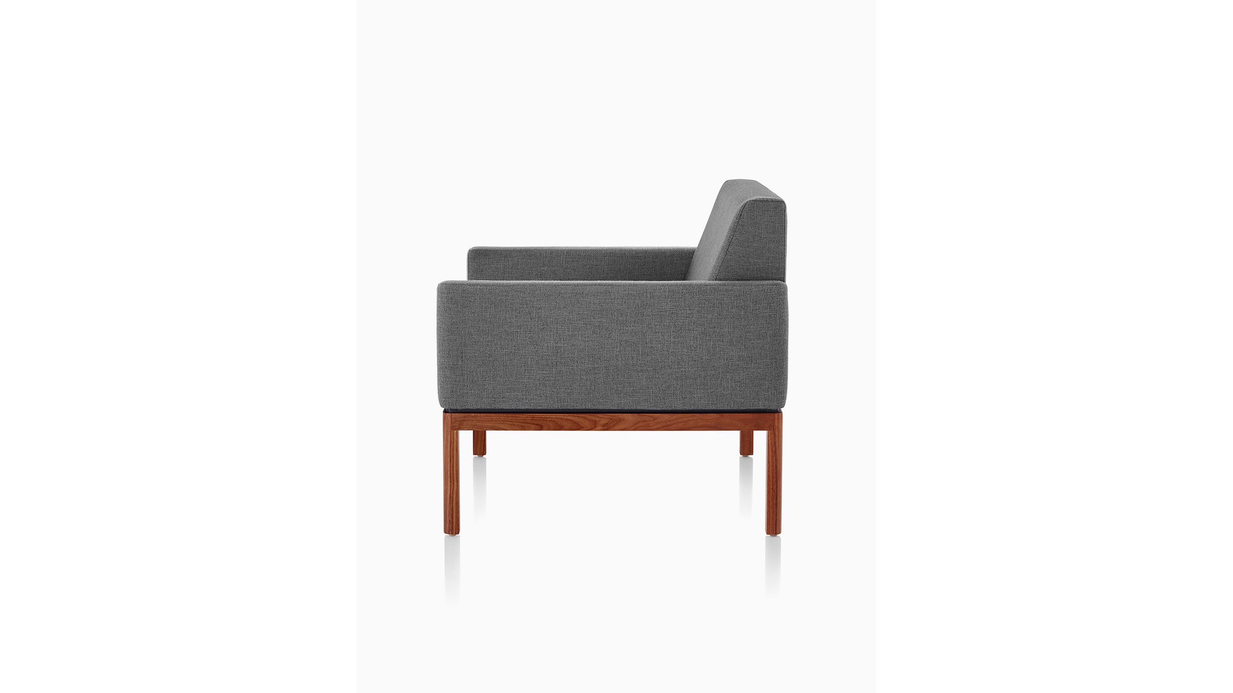 Sencillas e informales, las Sillas lounge con base de madera recortan una silueta calma, adecuada para esquemas lounge relajados. BassamFellows diseñó la colección en torno a dos elementos: una estructura de madera sólida pero esbelta con patas anchas y asientos prolijamente tapizados. El diseño versátil está disponible como sofá, sillón y reposapiés.